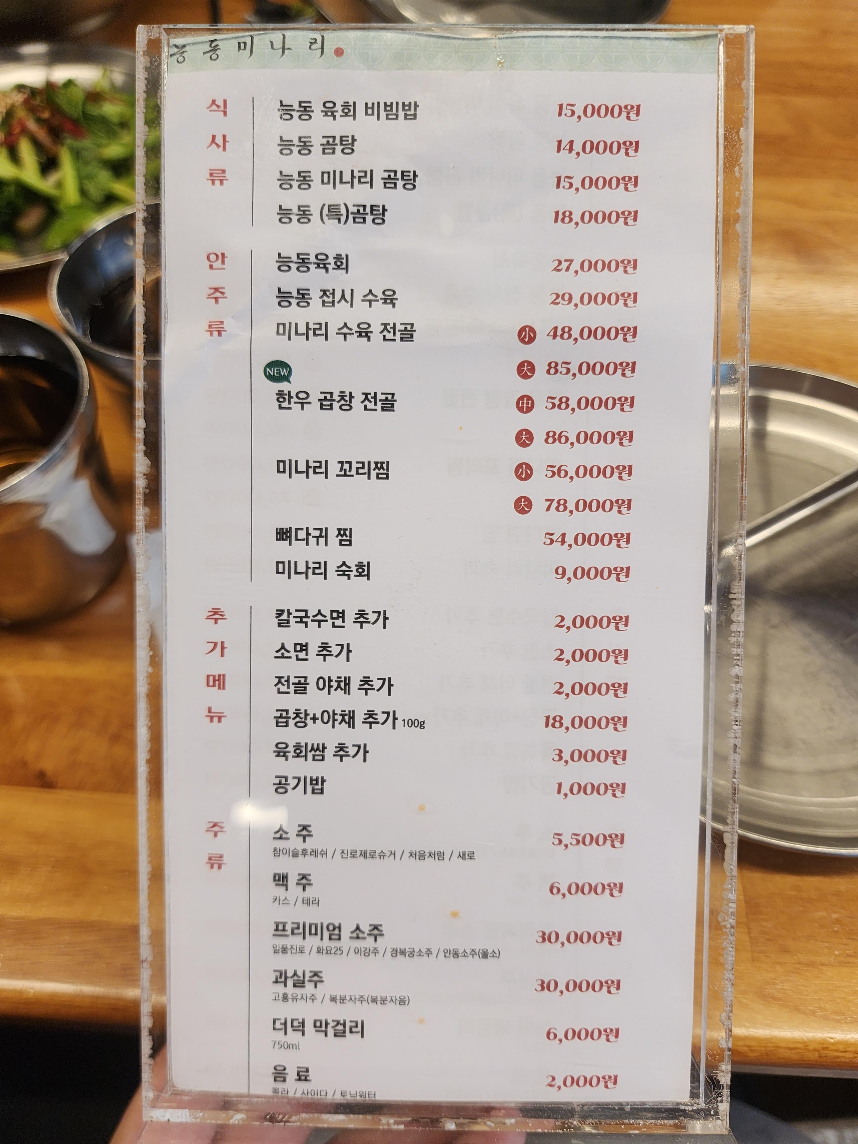 저희는 3명이서 식사를 했고 능동 미나리 곰탕 2인분, 능동 육회 1인분, 공깃밥 1개 추가했습니다.