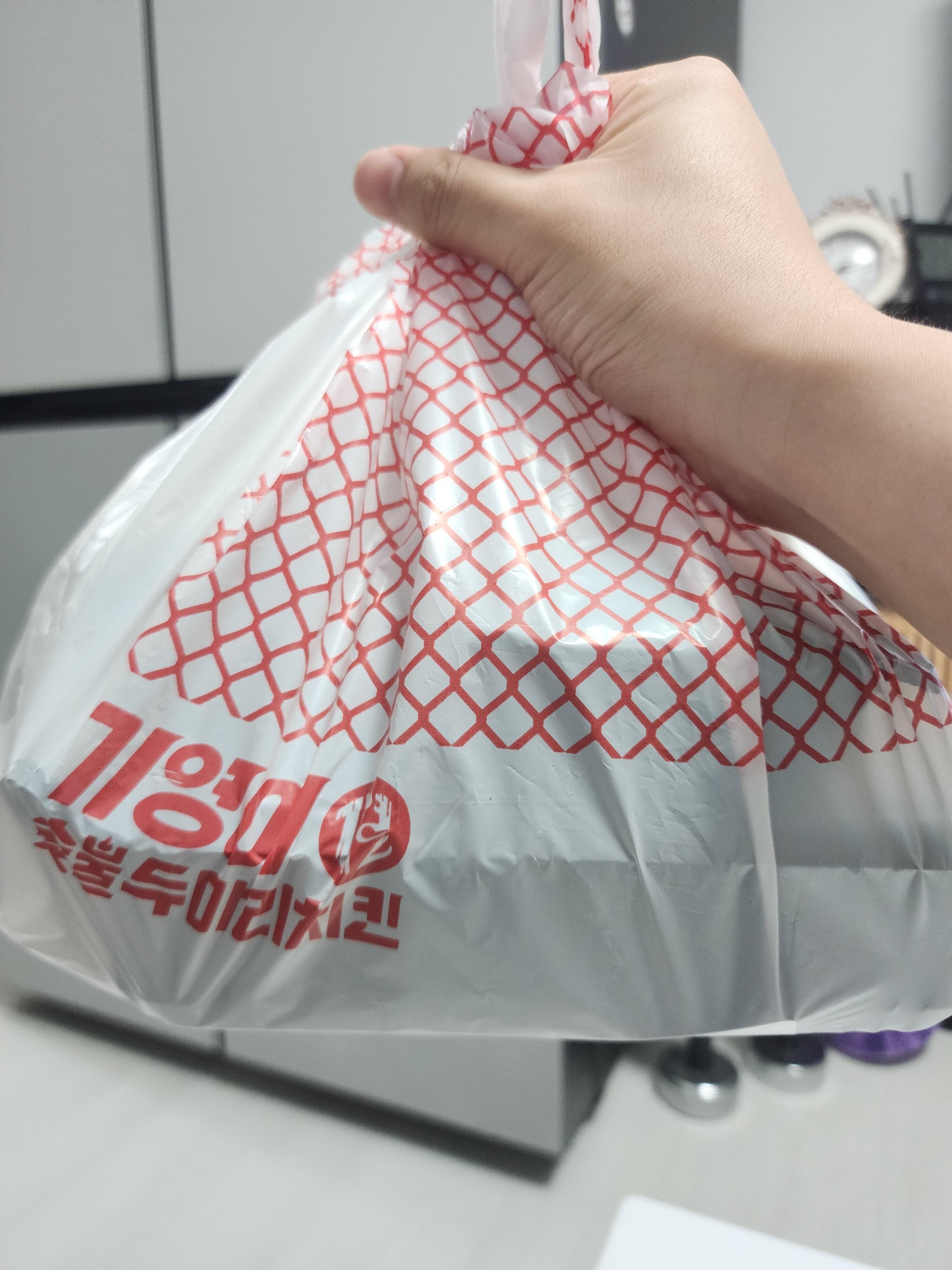 오늘은 기영이 숯불 두 마리 치킨을 먹었습니다.