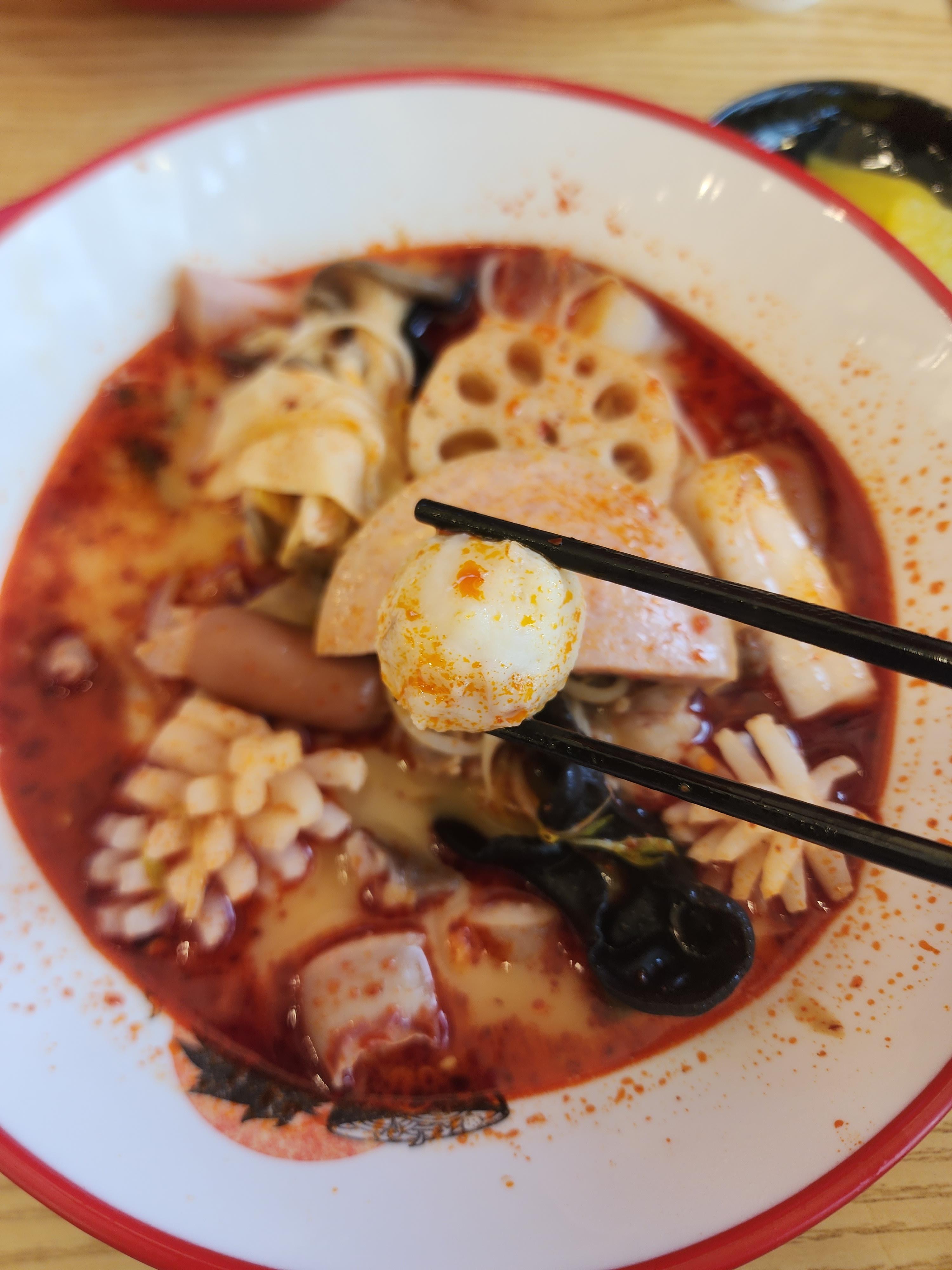 저는 마라탕을 숟가락에 얹은 다음에 국물 살짝 올려서 먹습니다.