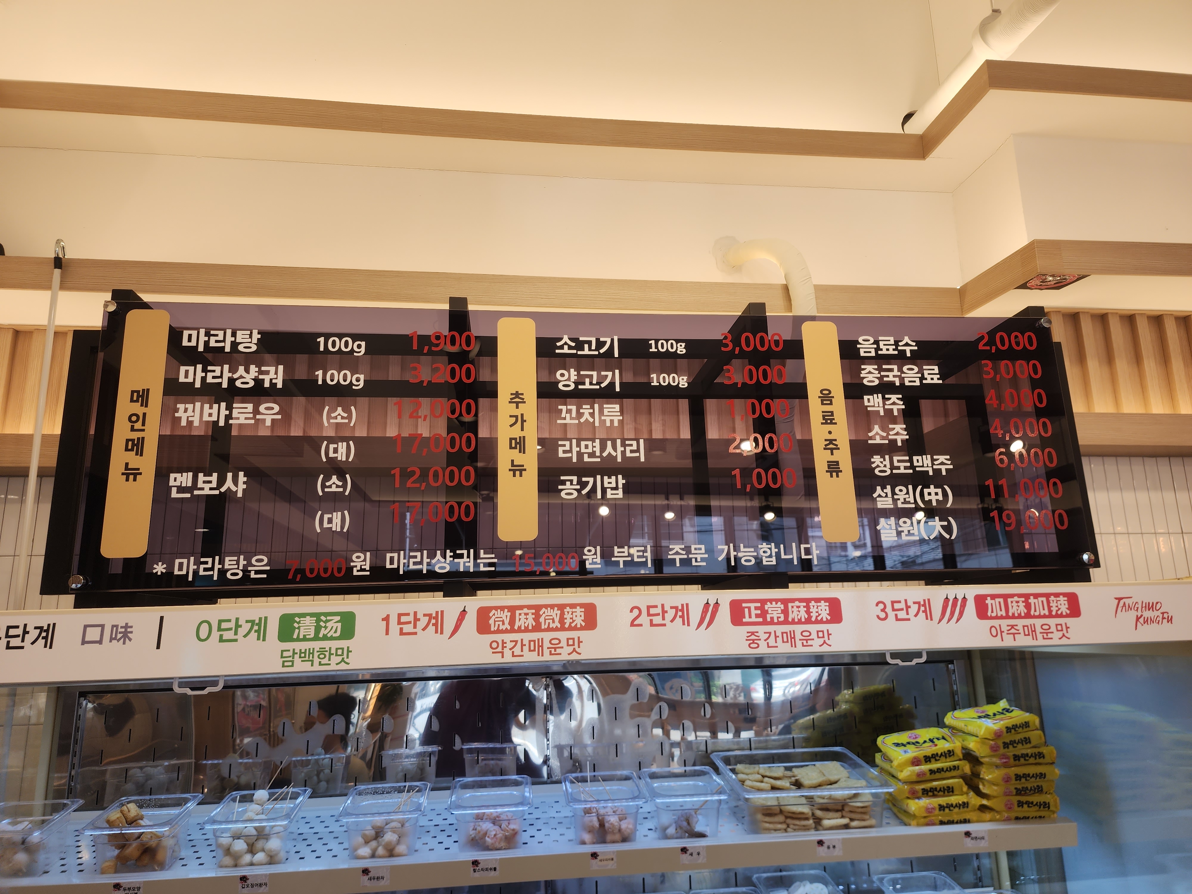 탕화쿵푸마라탕 매장 내부입니다.