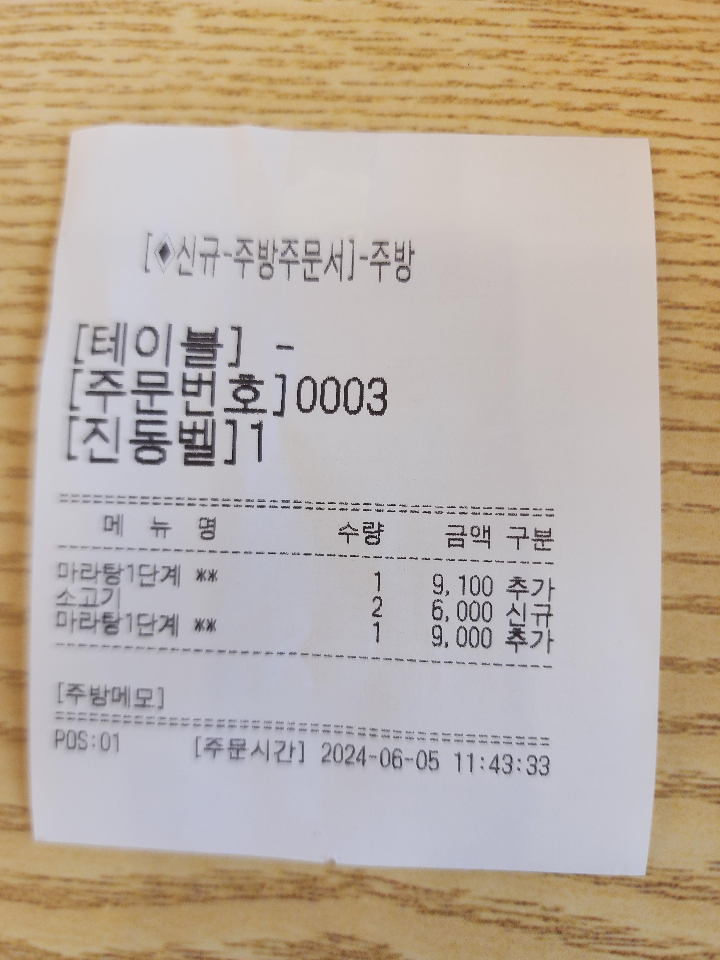 저는 매운 것에 좀 약하기 때문에 1단계로 주문했습니다.