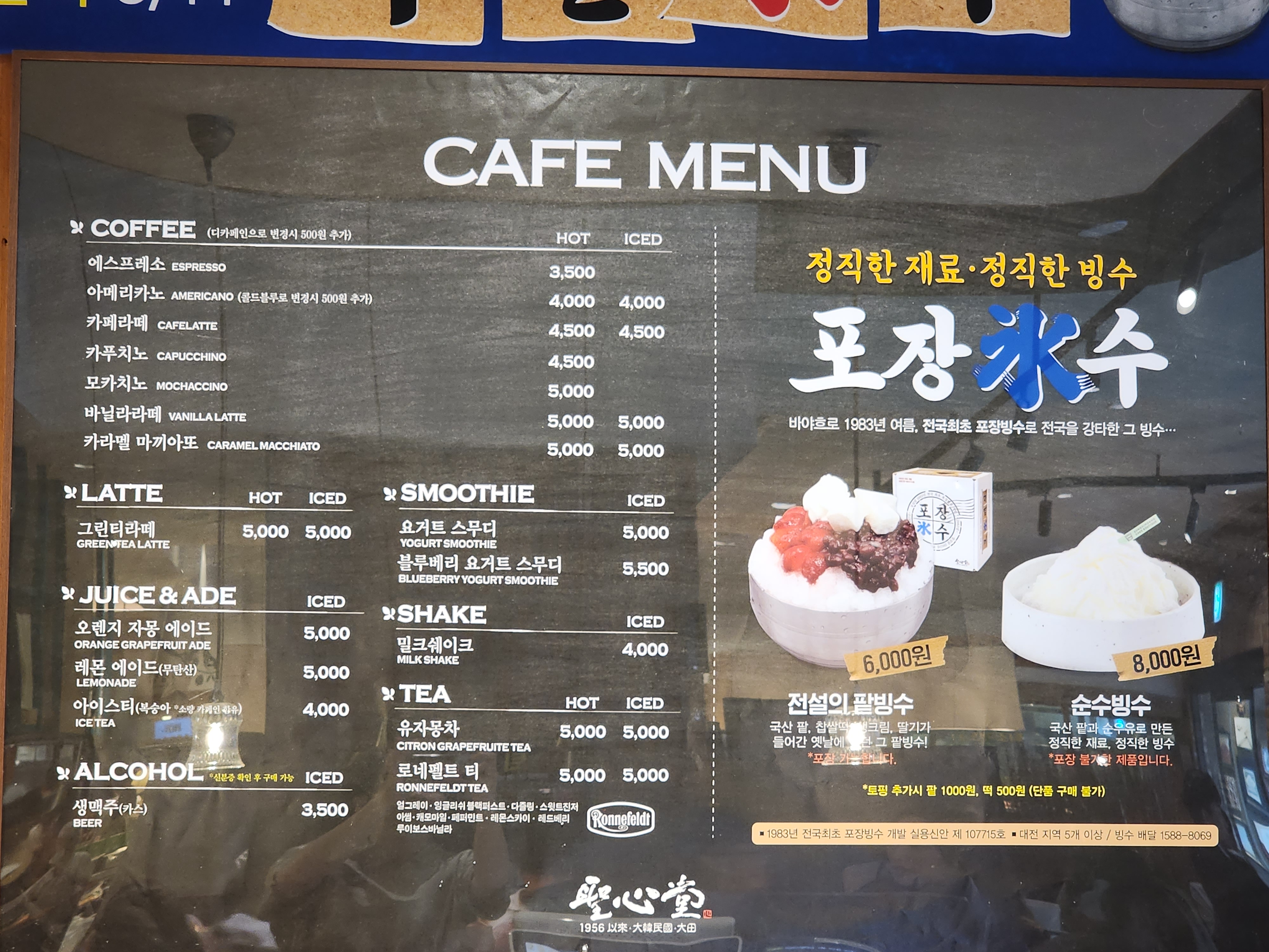 성심당 카페 메뉴입니다.