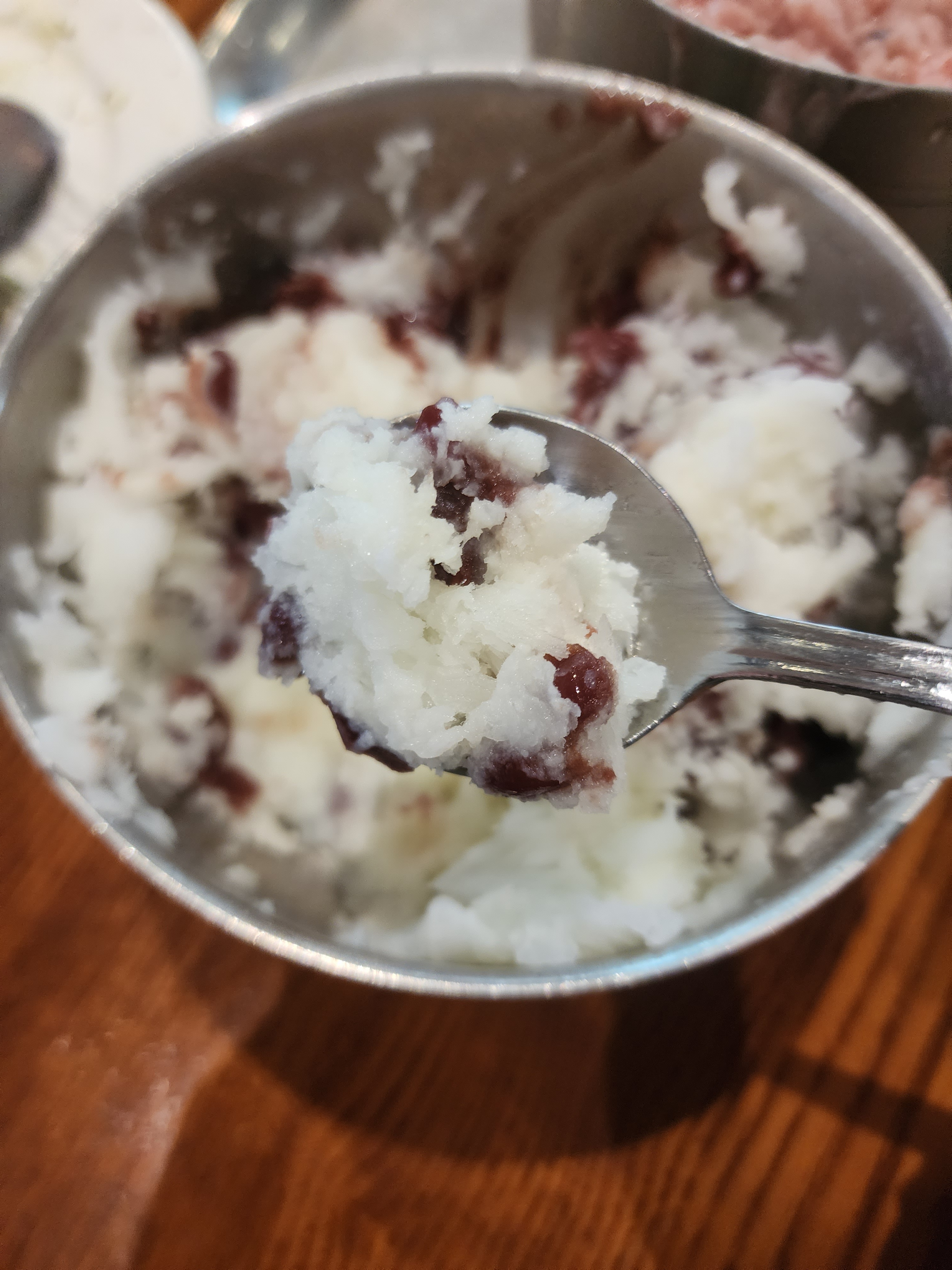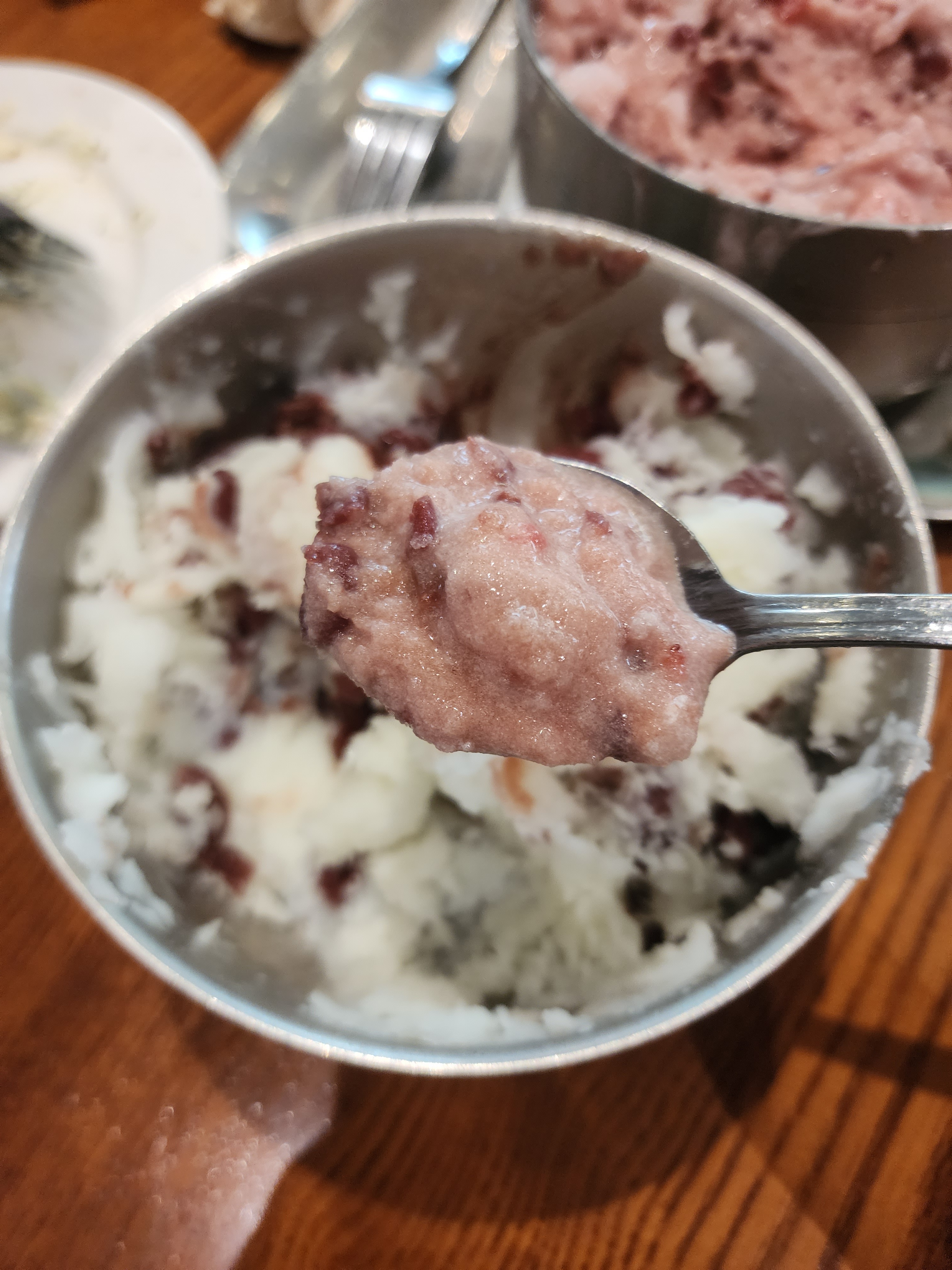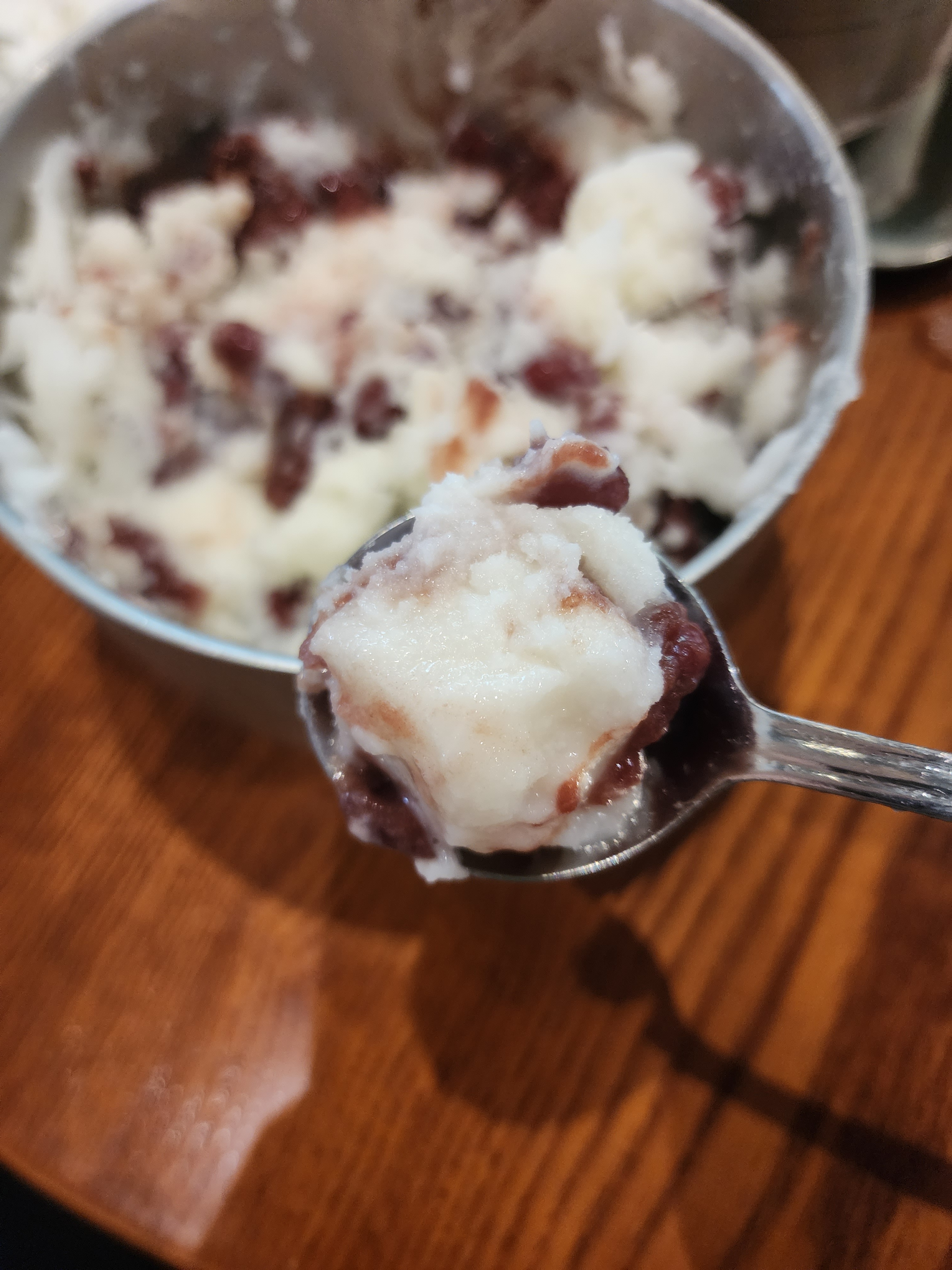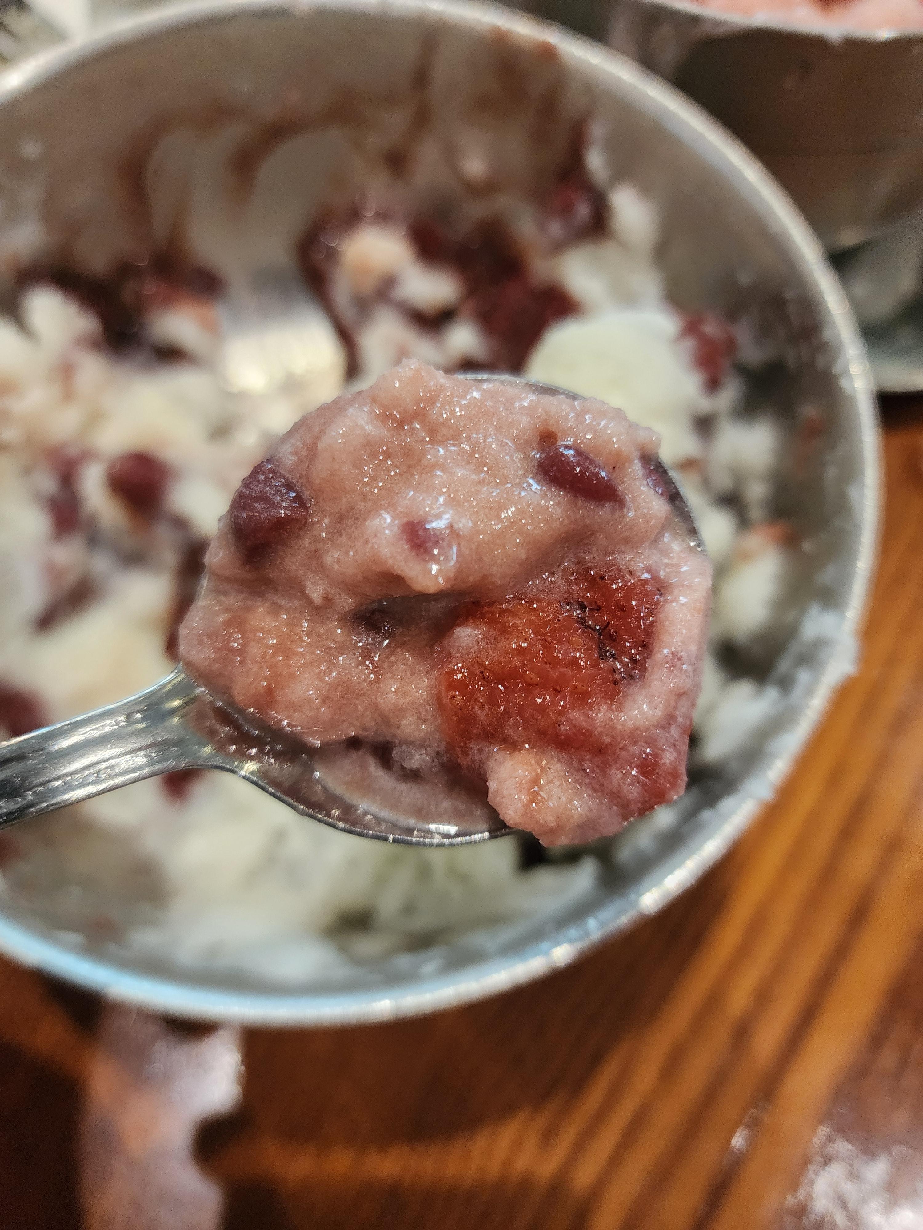 팥과 함께 먹으면 맛있을 것 같아서 팥도 한 숟가락 퍼서 먹어줬습니다.