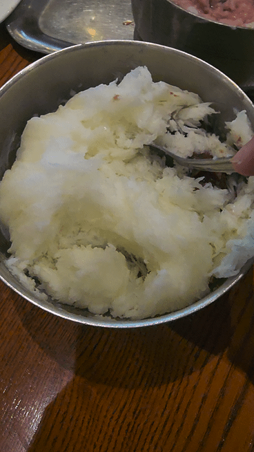 짠!! 다 섞은 팥빙수의 모습입니다.