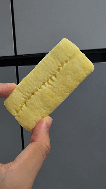 그러나 사르르 녹는 식감이기 때문에 과자 봉지를 뜯을 때 부서지기 쉬우니 조심해야 할 것 같습니다.