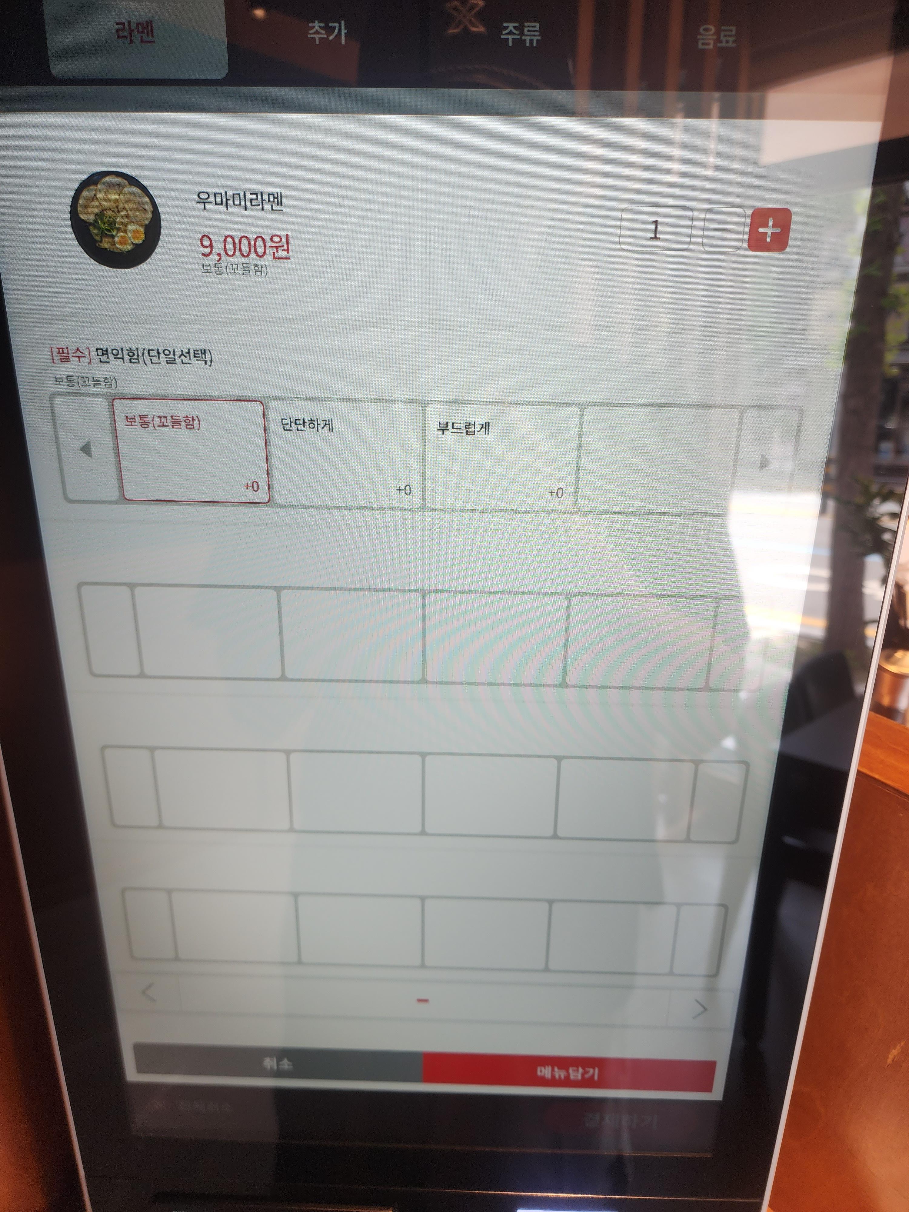 우마미라멘은 면 익힘을 조절할 수 있습니다.