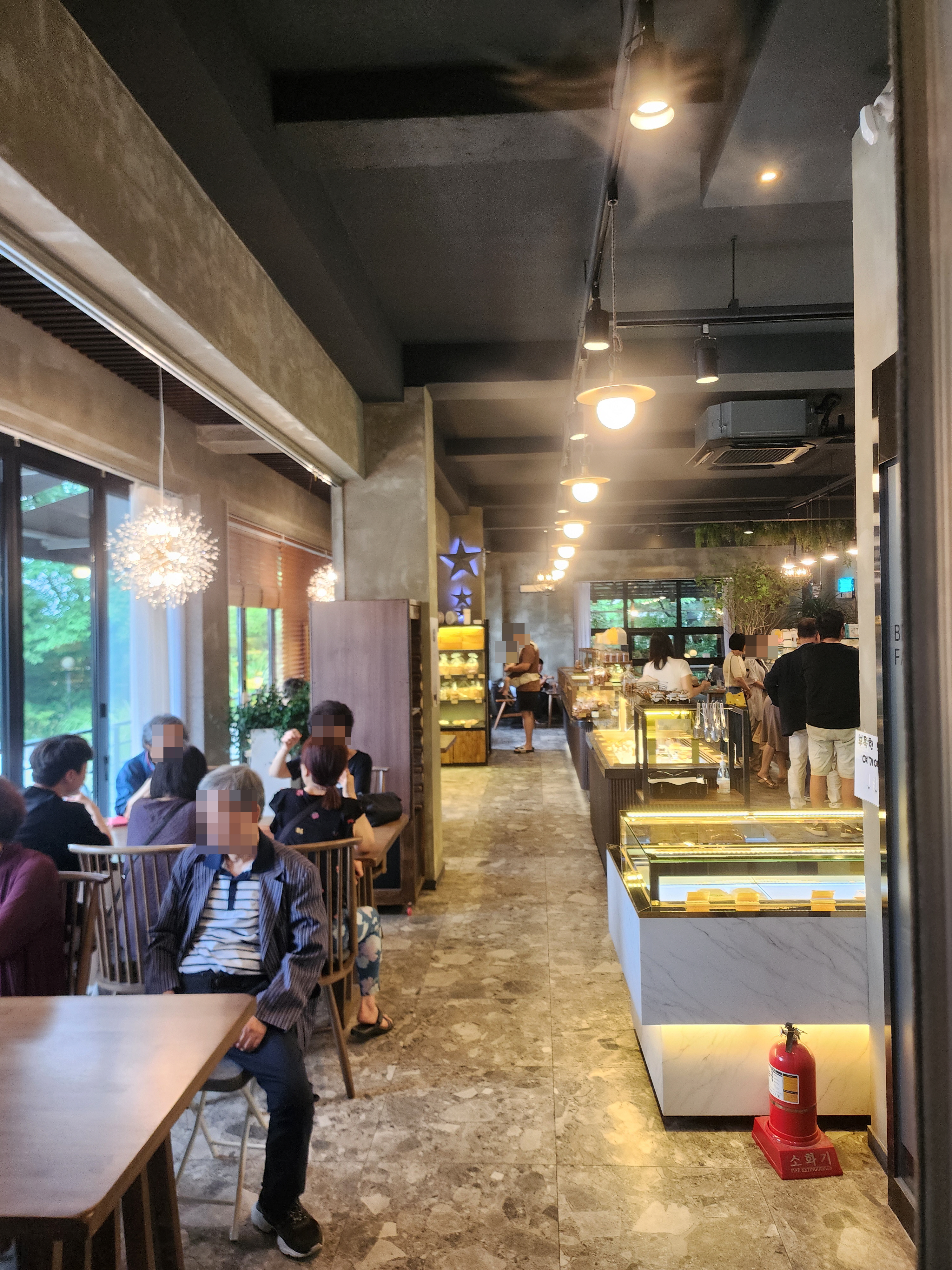 1층에는 매장 자리가 조금 있고 주문과 베이커리, 디저트를 고를 수 있습니다.