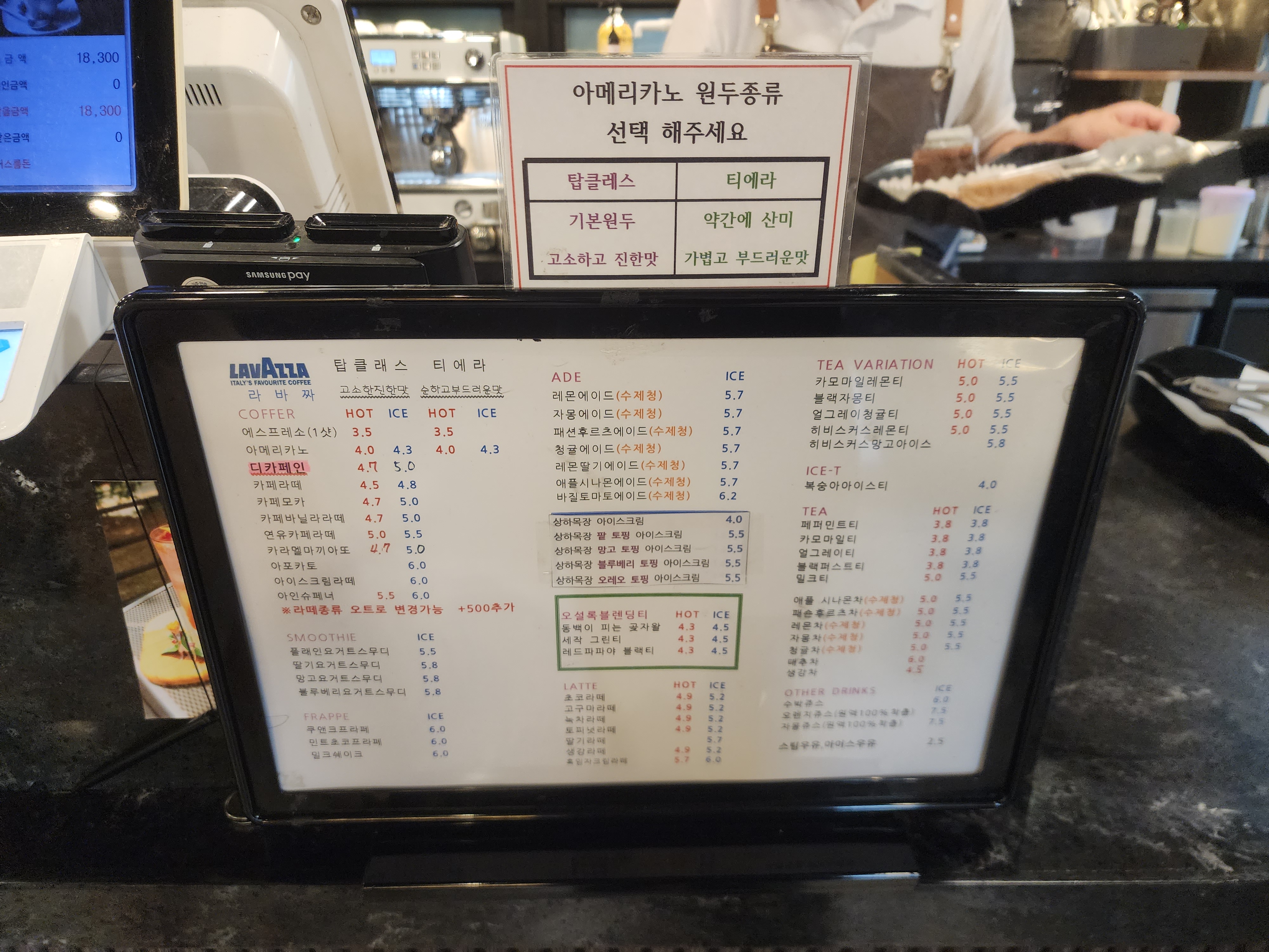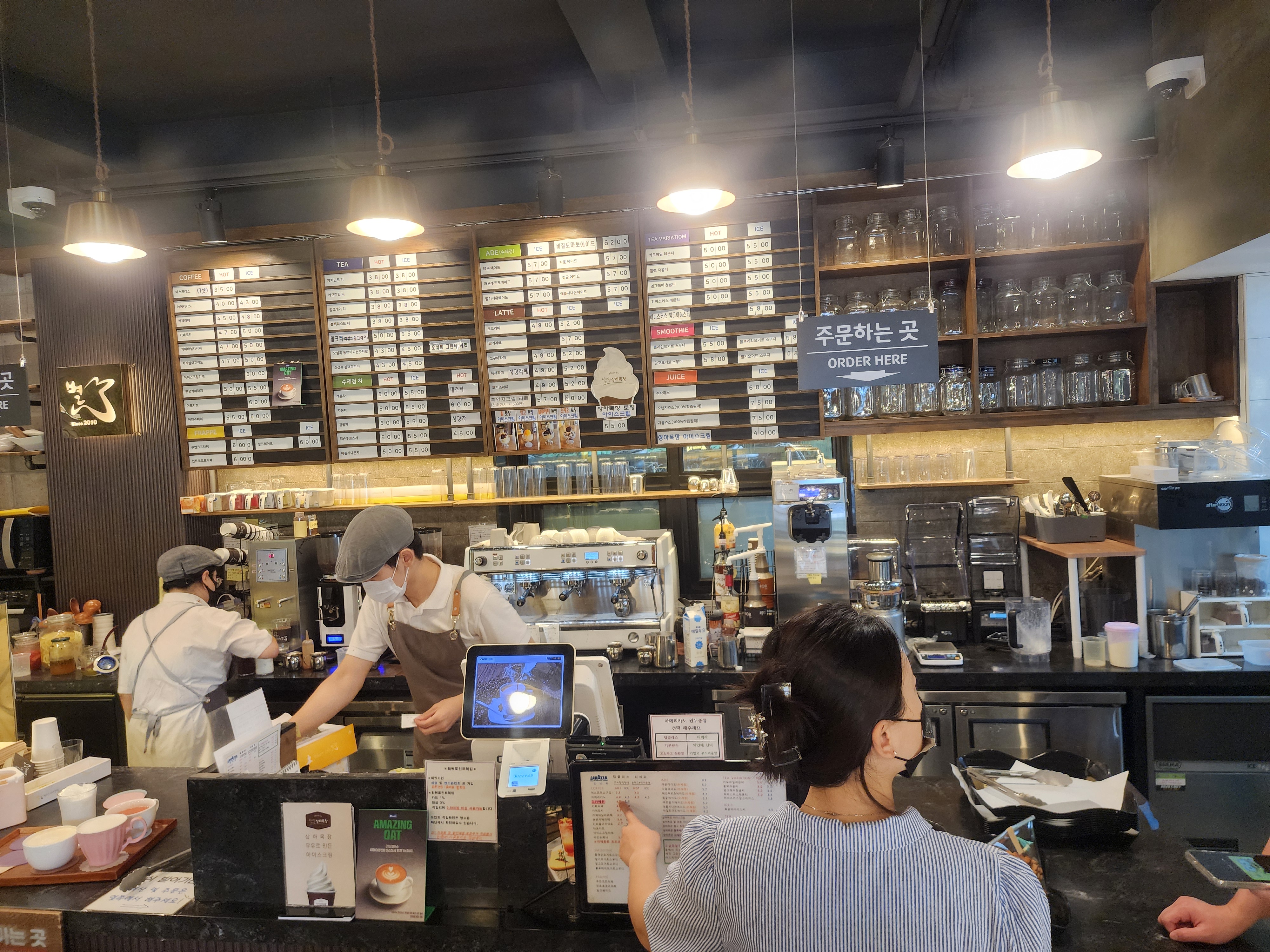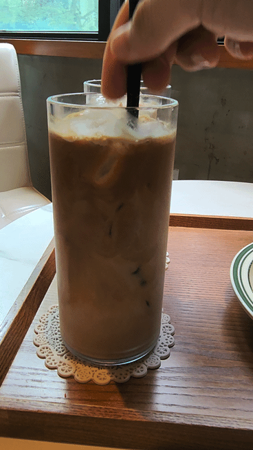 저희는 아이스 아메리카노와 아이스 카페라떼를 주문했습니다.