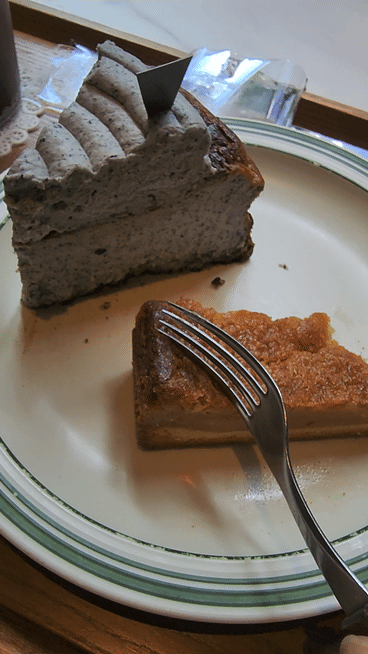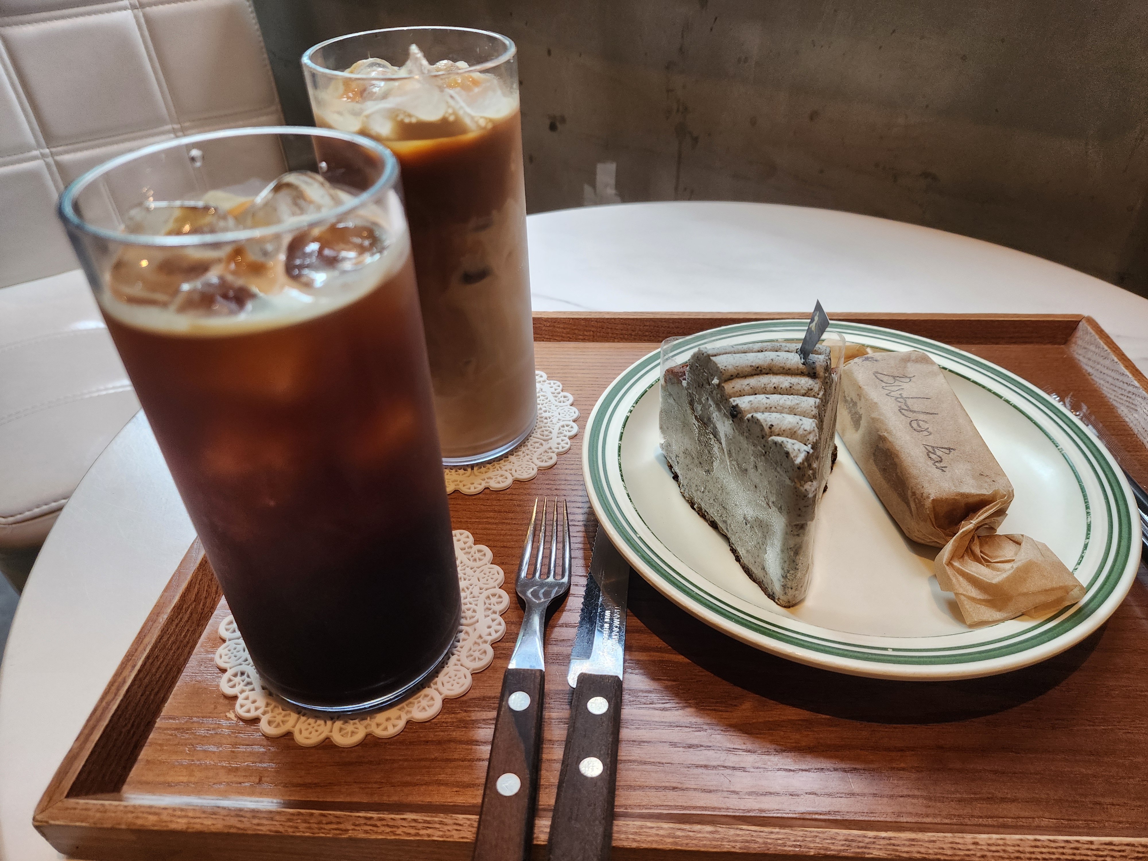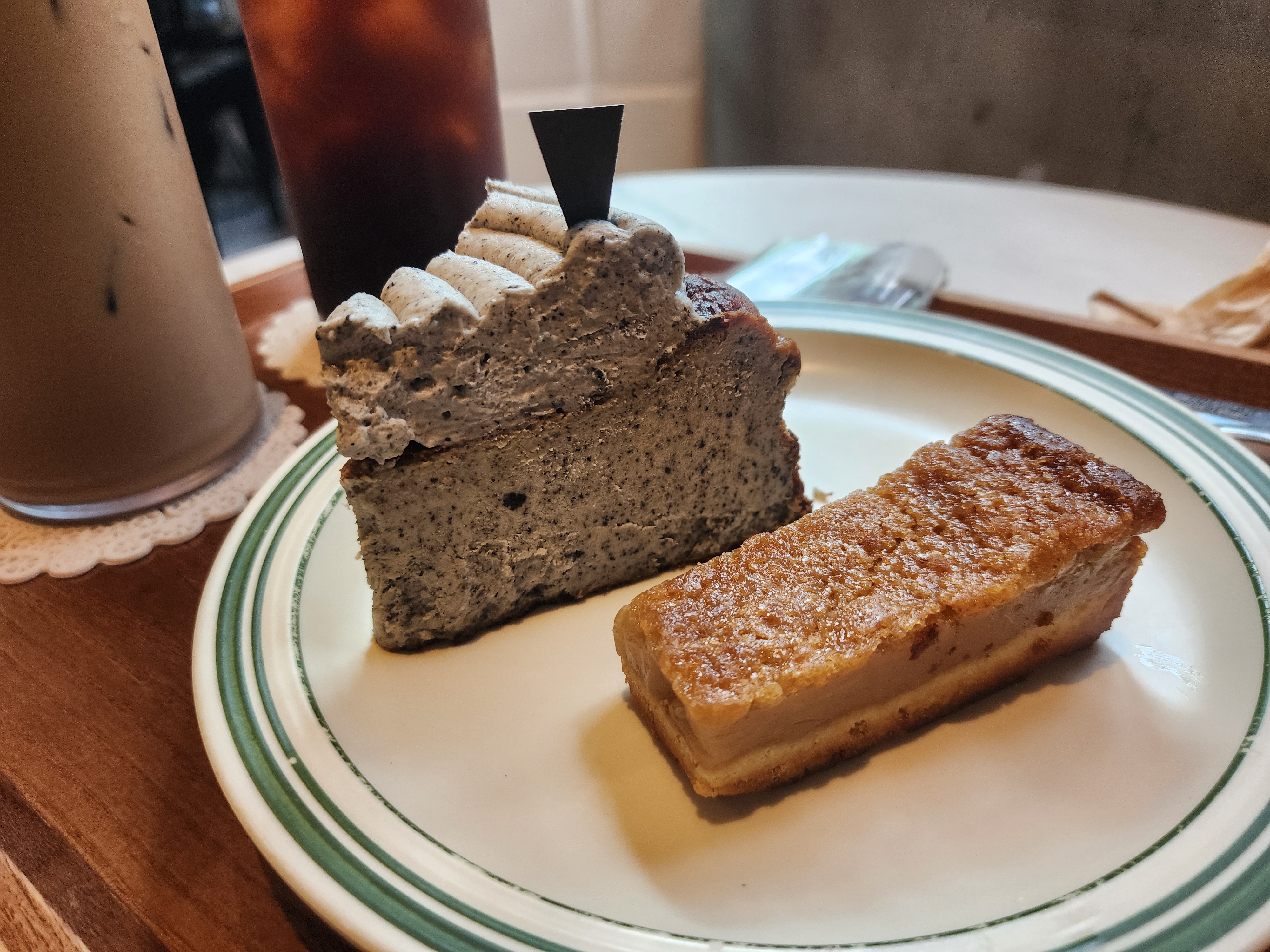 저희는 버터바와 흑임자 바스크 치즈 케이크를 주문했습니다.