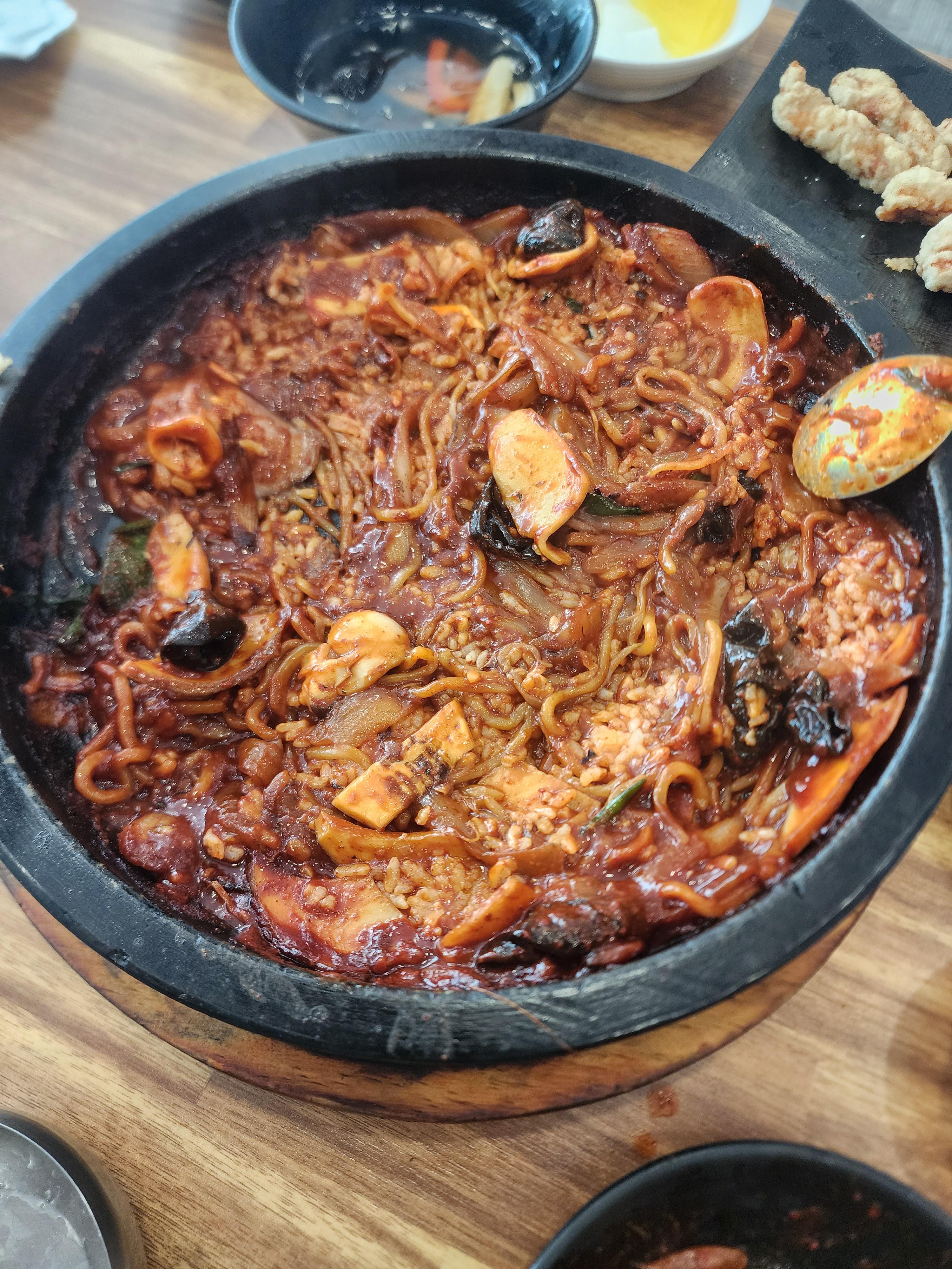 리뷰를 보니 지글지글 끓는 돌판 위에 짬뽕이 나오는데 해산물이 많더라고요!!!