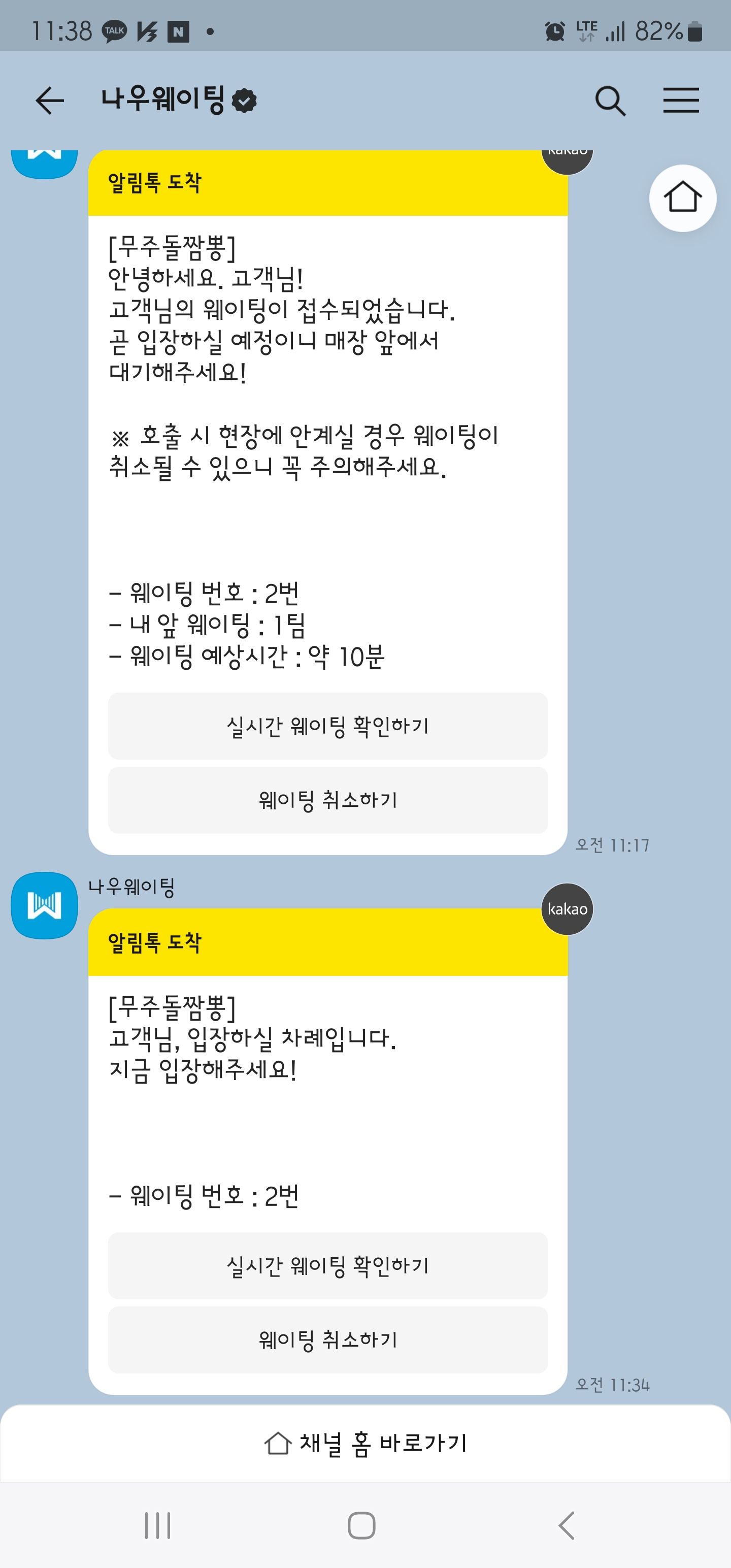 바로 웨이팅 확인입니다!!