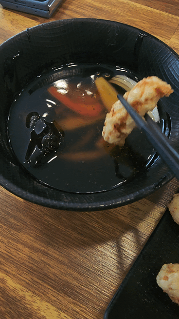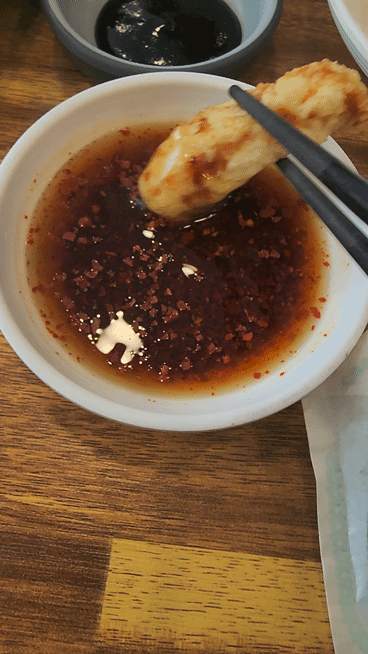 저는 탕수육 소스를 먼저 찍고 그 상태로 간장 소스를 한번 더 찍어서 먹습니다.