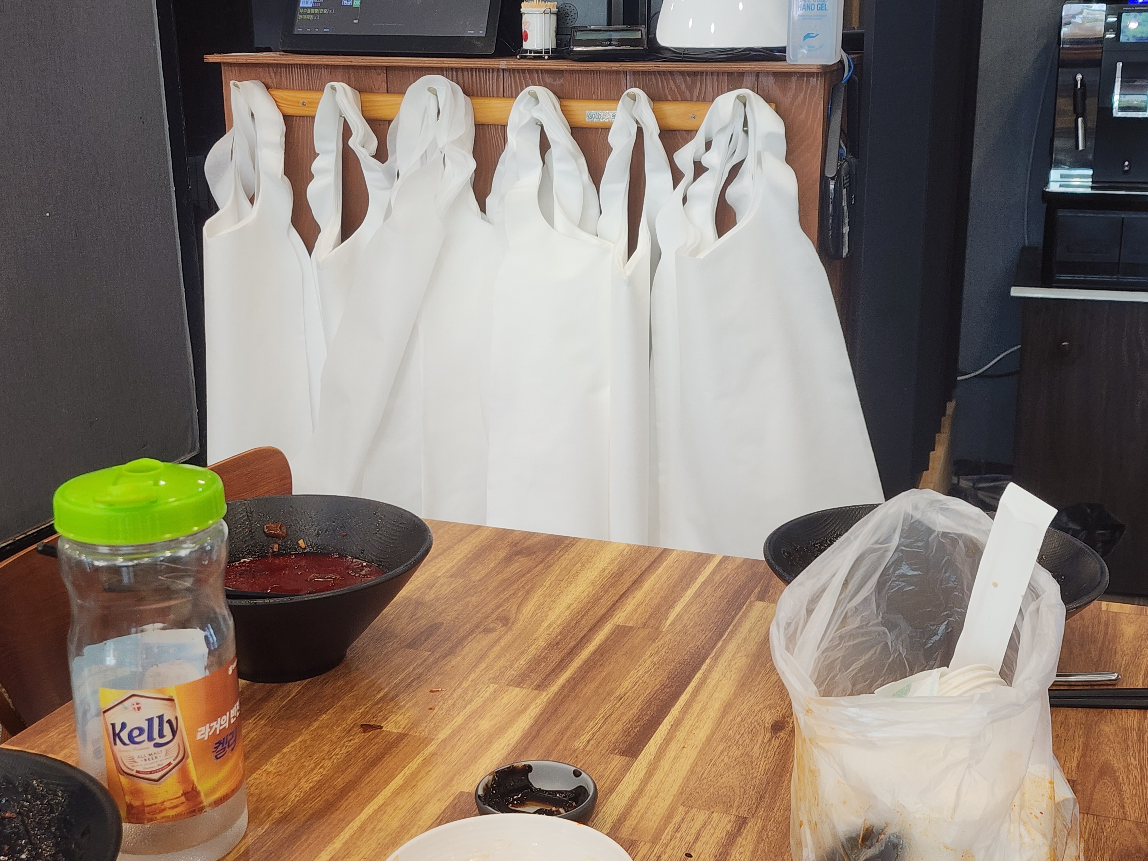일회용 앞치마도 구비돼 있어서 좋습니다.