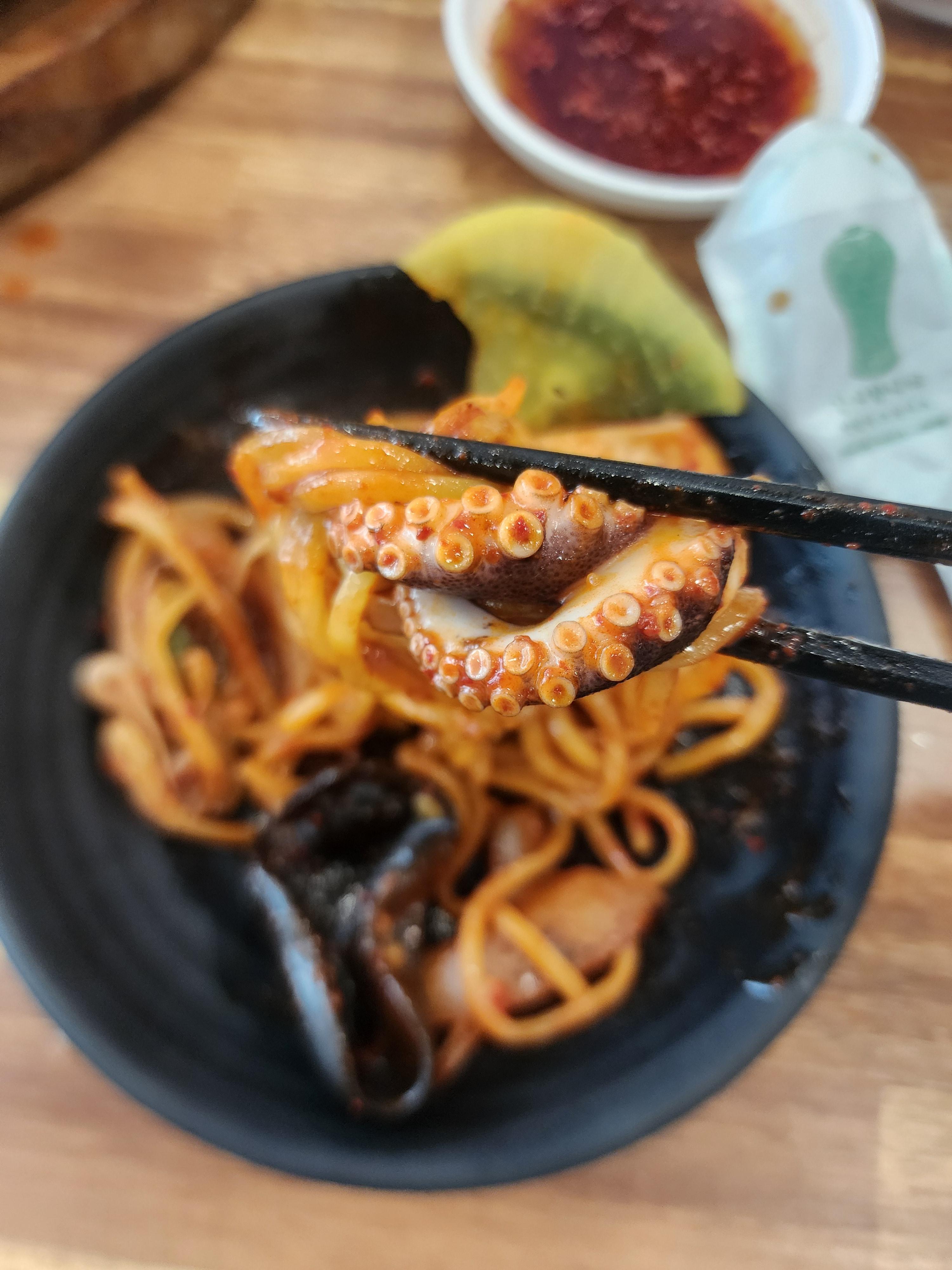 해산물과 면을 같이 먹어줬는데요.