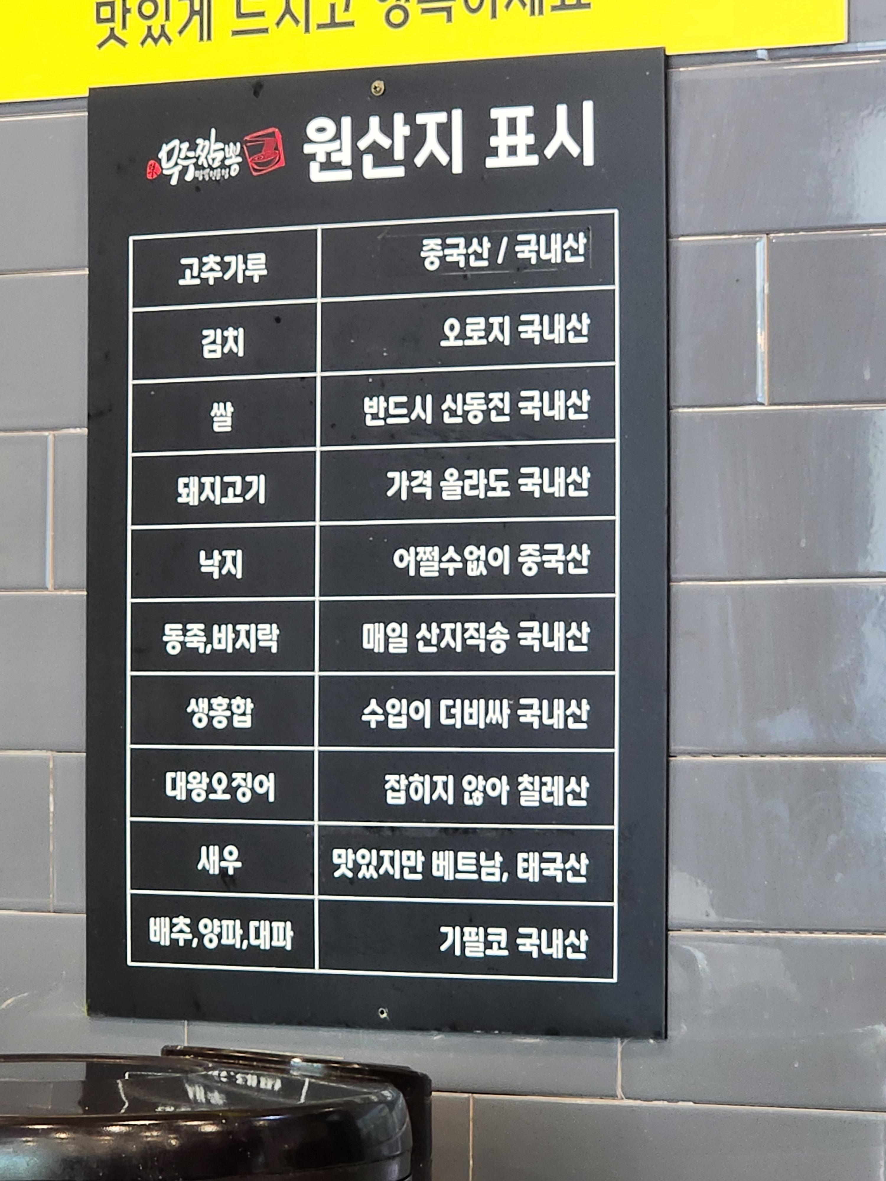 무주 돌짬뽕 원산지입니다.