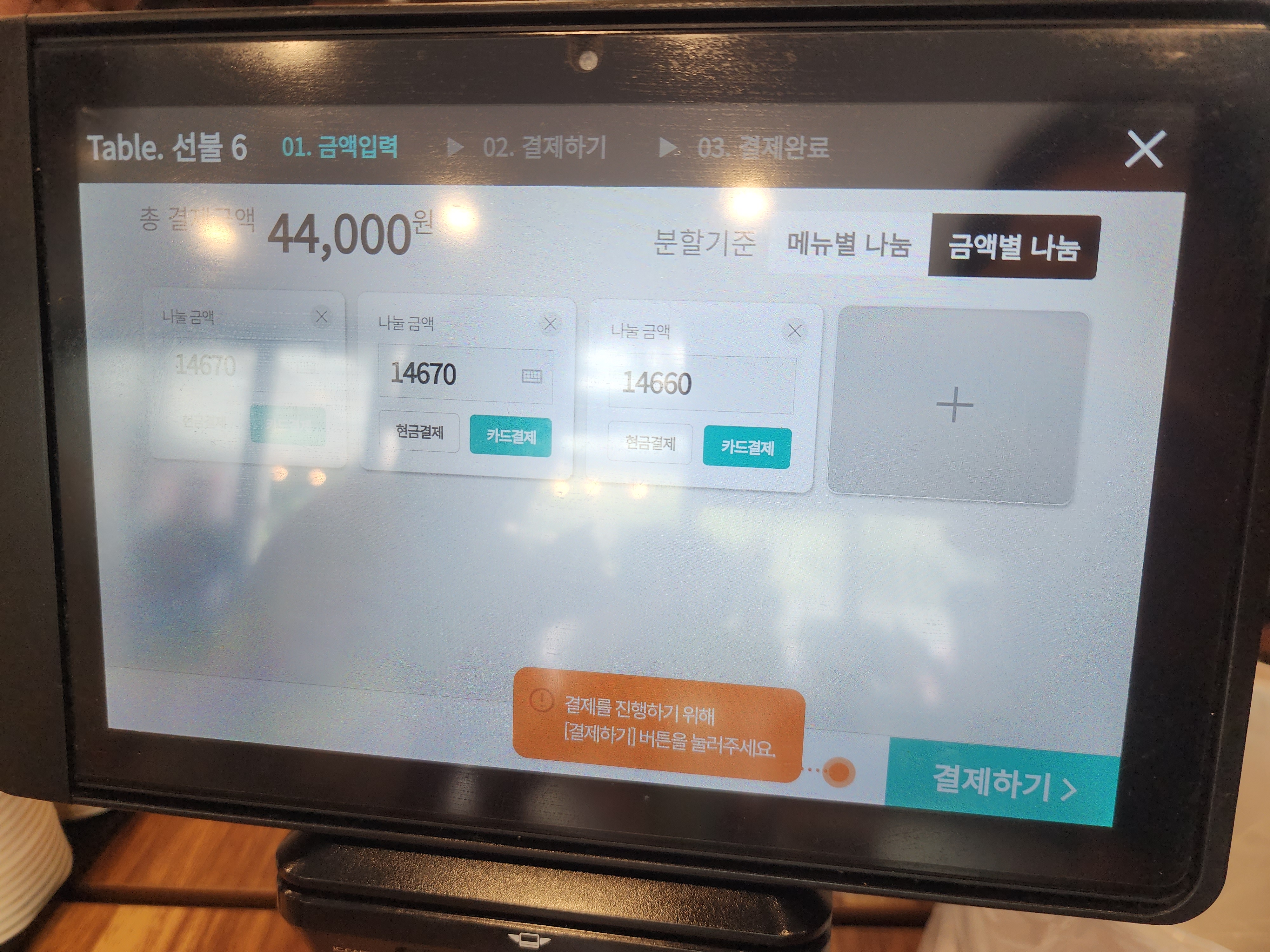 다른 식당에서 더치페이 기능은 본 것 같은데 써본 적이 없었거든요!!
