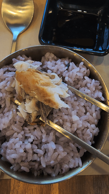 반찬을 푸고 조금 기다리다 보면 생선구이가 나옵니다.