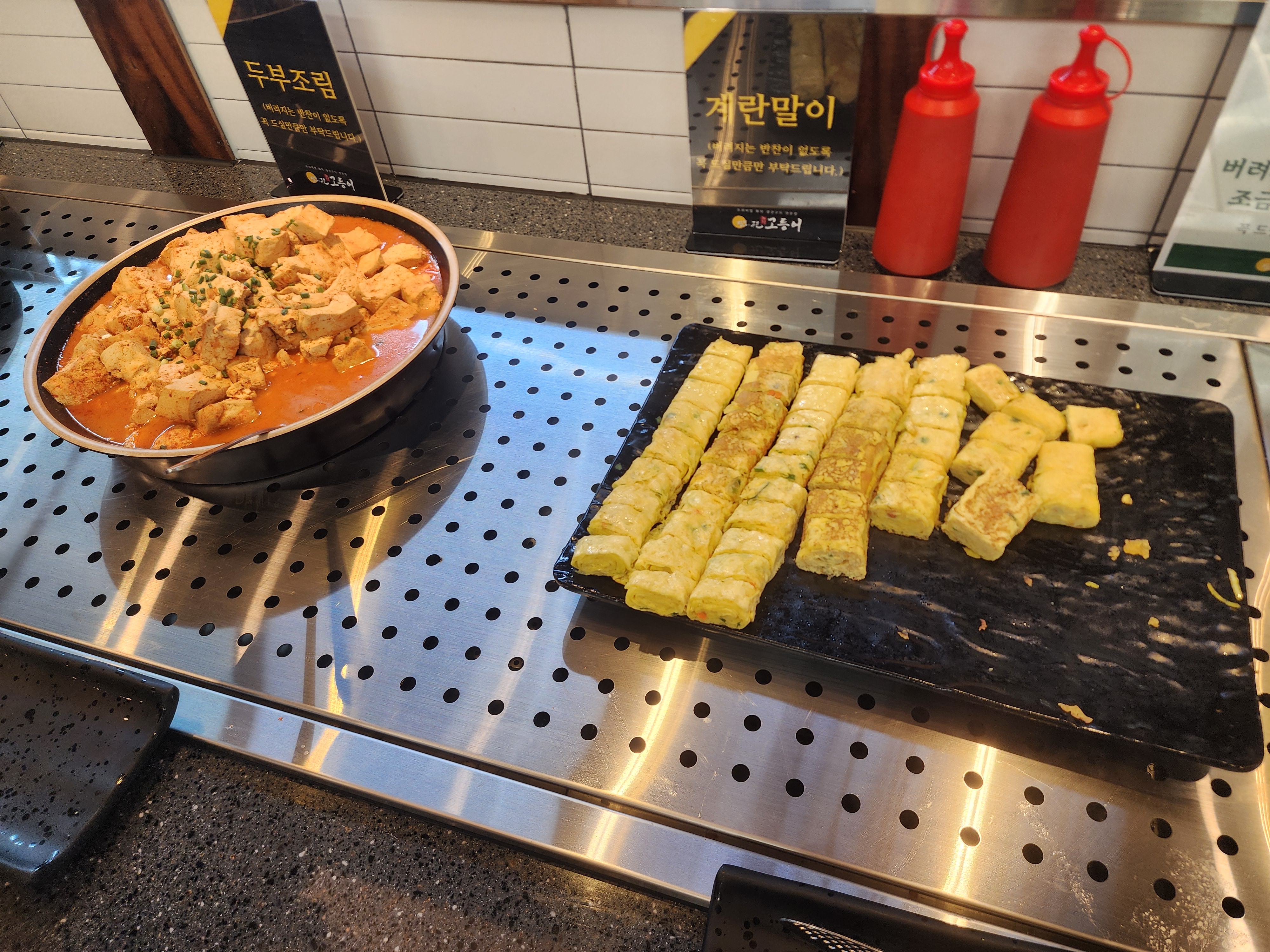 잡채, 두부조림, 계란말이 다 좋아하는 메뉴인데 앞에서 도토리 묵과 치커리를 야무지게 퍼서 자리가 없네요.