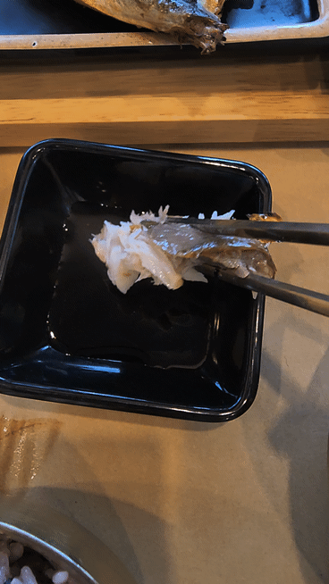 이제 본격적으로 먹기 위해 임연수 구이 뼈를 발라줬습니다.