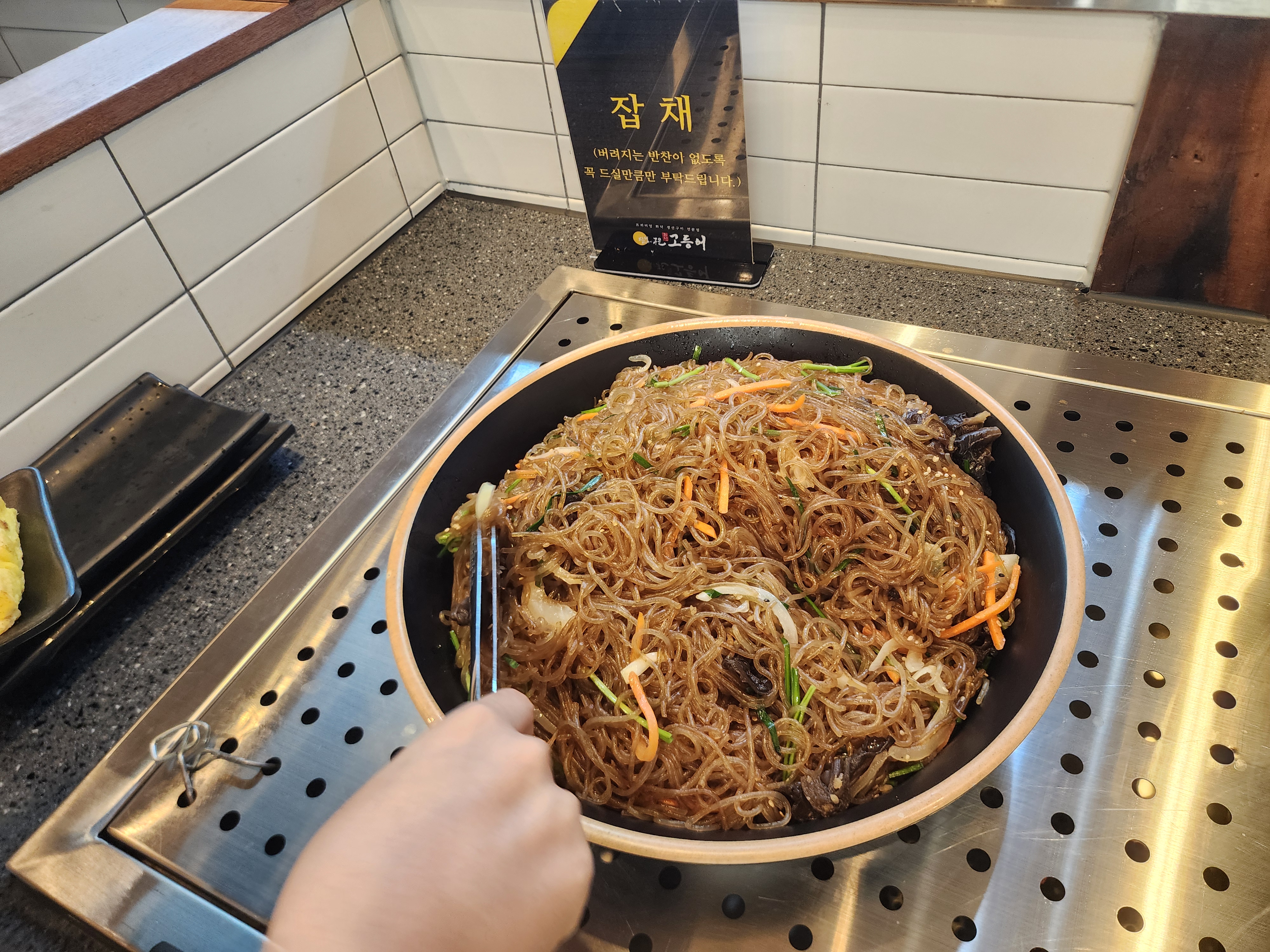 일단 잡채와 계란말이를 퍼서 자리로 돌아왔습니다.