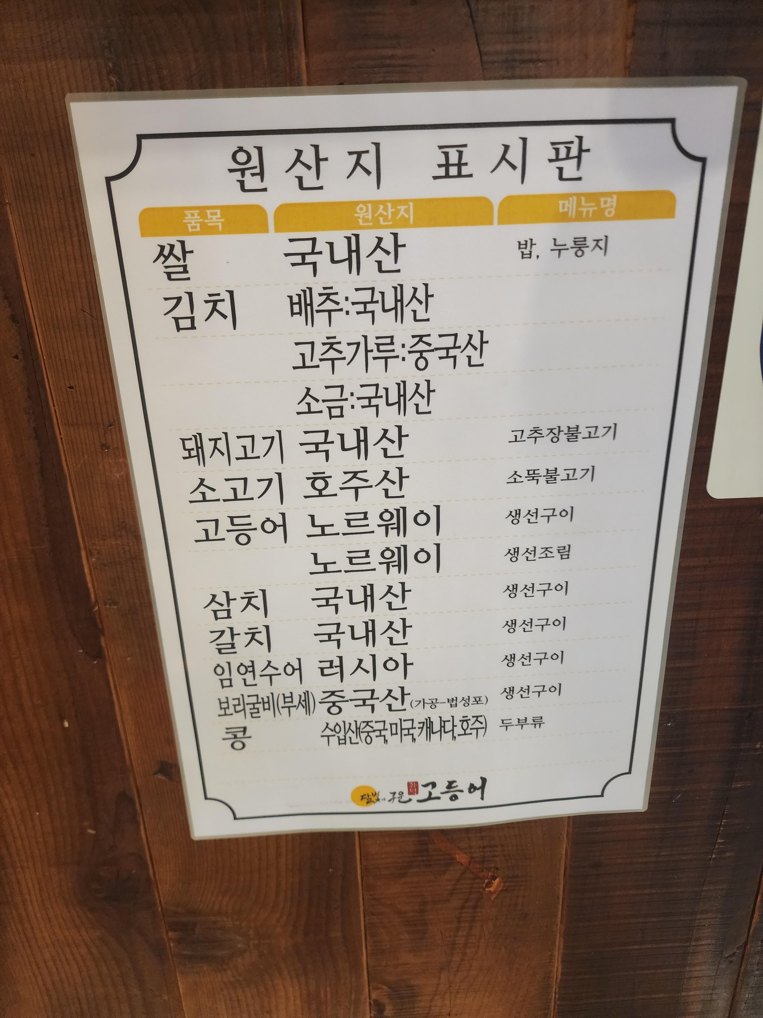 달빛에 구운 고등어 원산지입니다.