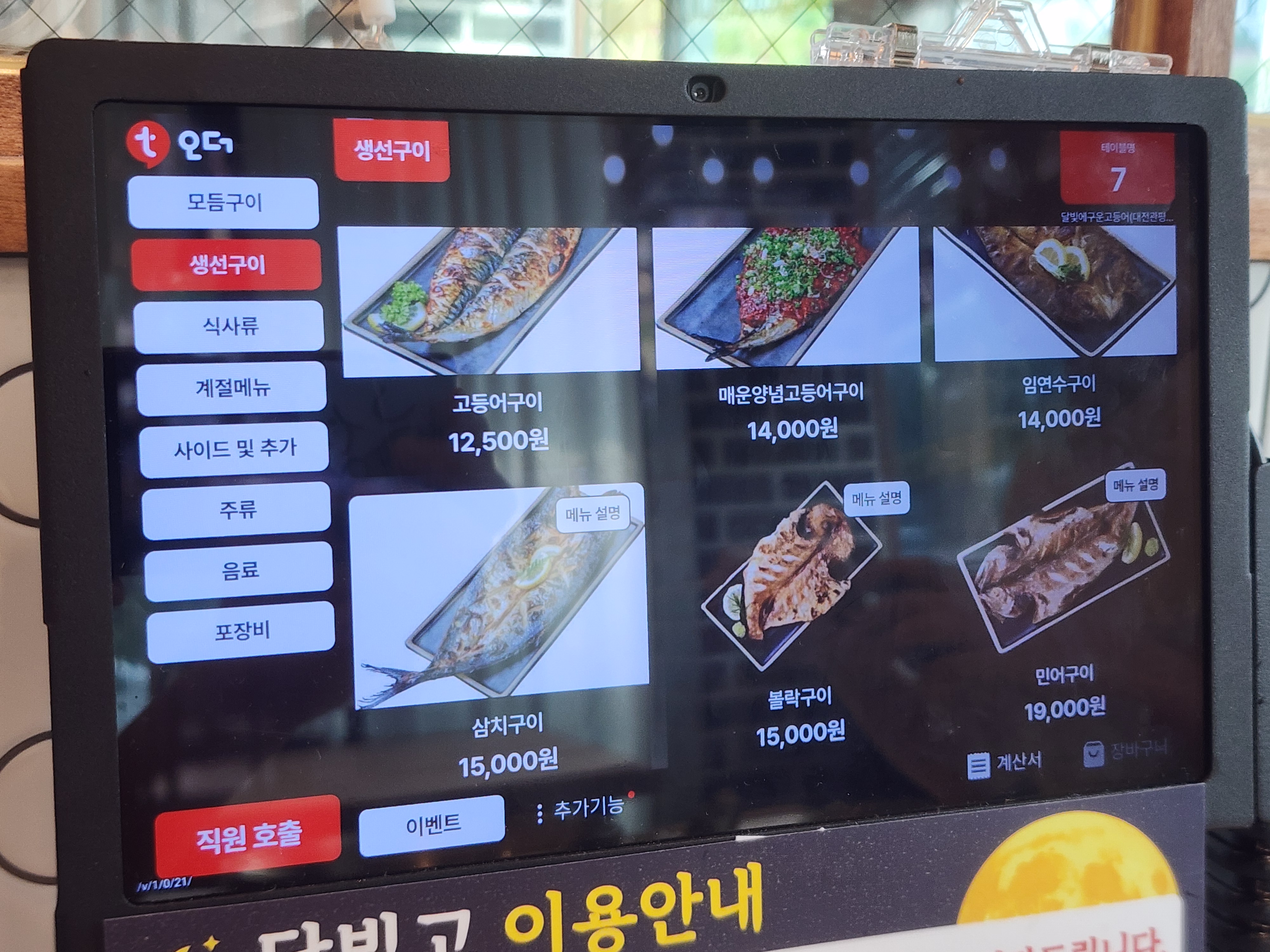달빛에 구운 고등어 메뉴 및 가격입니다.