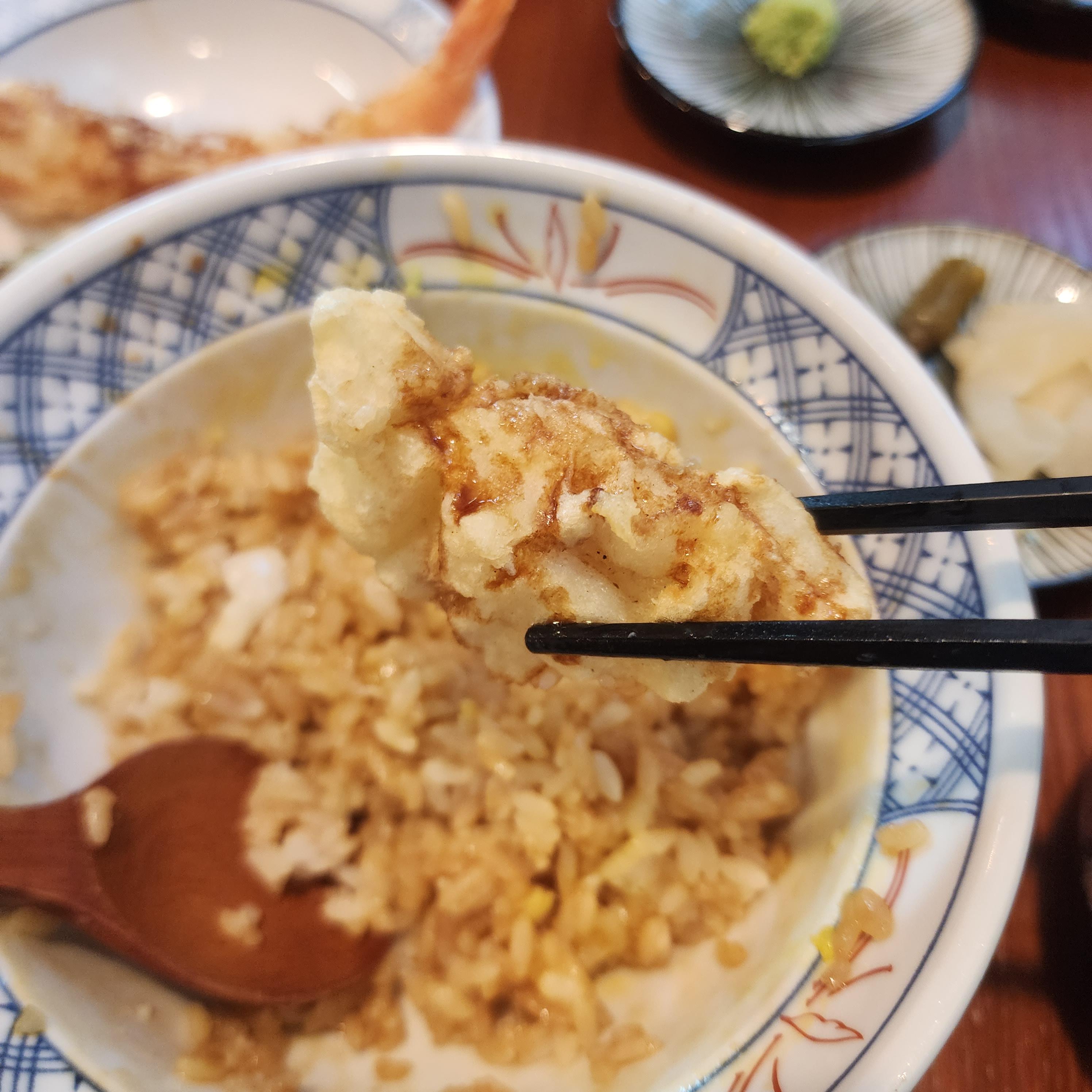 요이텐동에 있는 튀김 중 개인적으로 갑오징어가 제일 맛있게 먹었습니다.