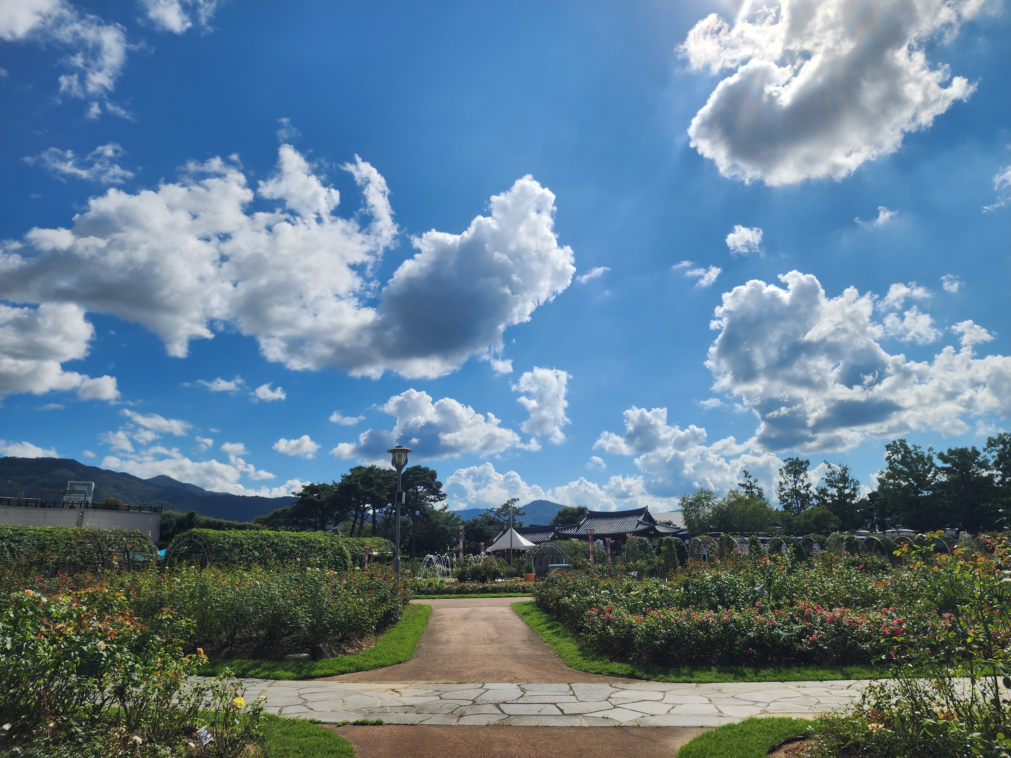 장미 구경을 하다가 하늘과 찍었는데 개인적으로 이쁘게 찍혀서 기분이 좋습니다.