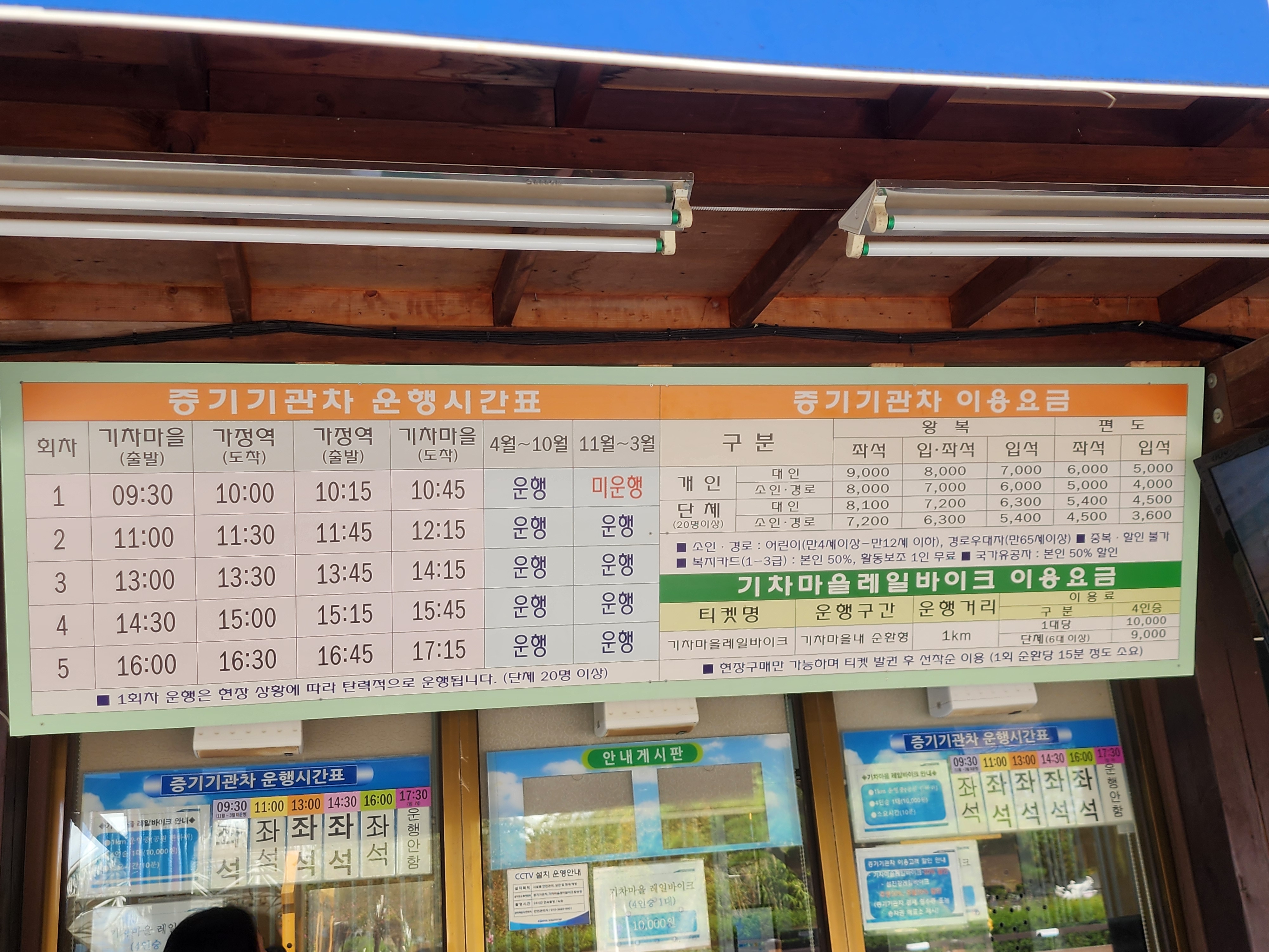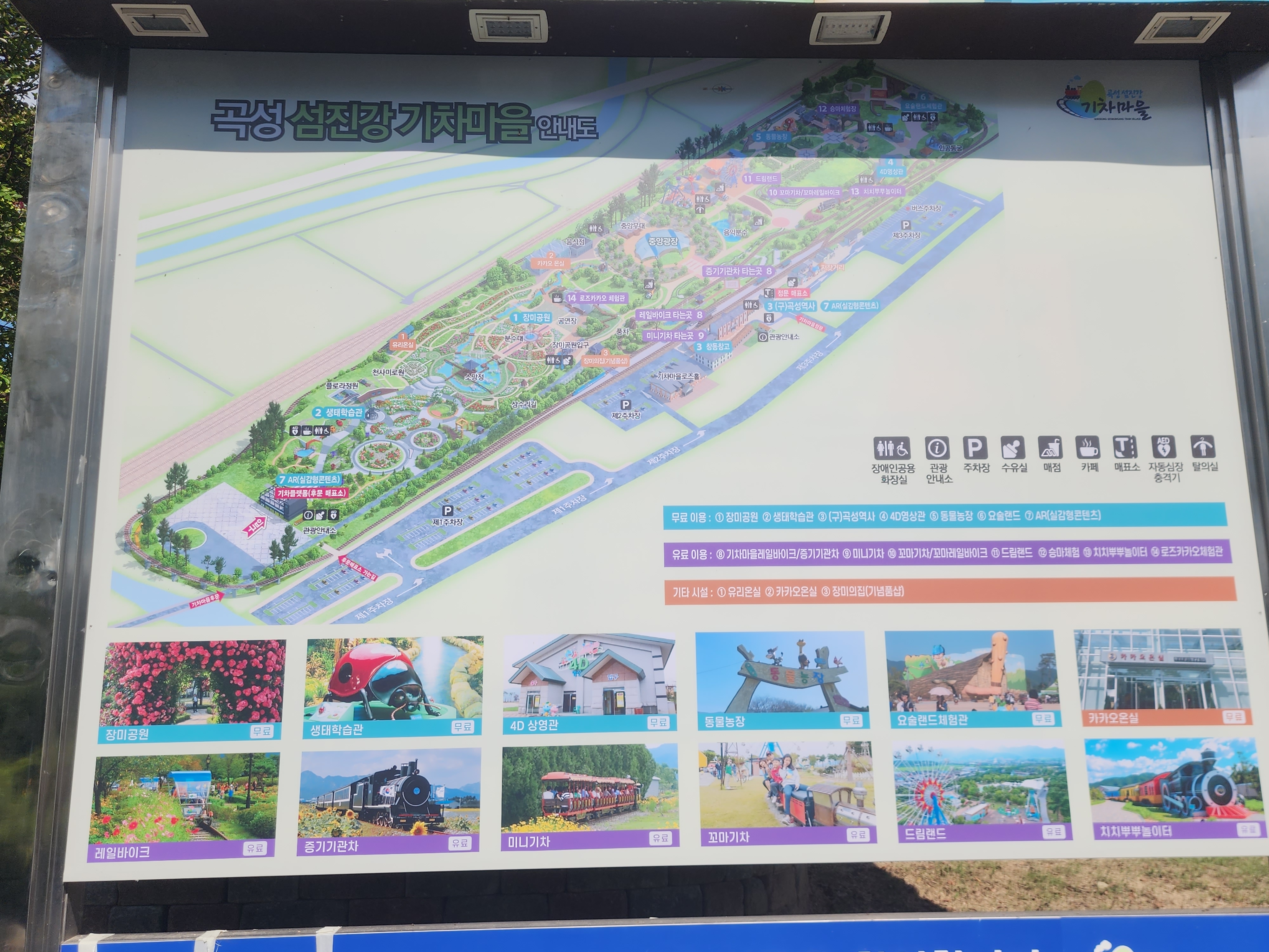 기차마을 내에는 무료로 이용할 수 있는 것과 유료로 이용할 수 있는 것이 나눠져 있습니다.
