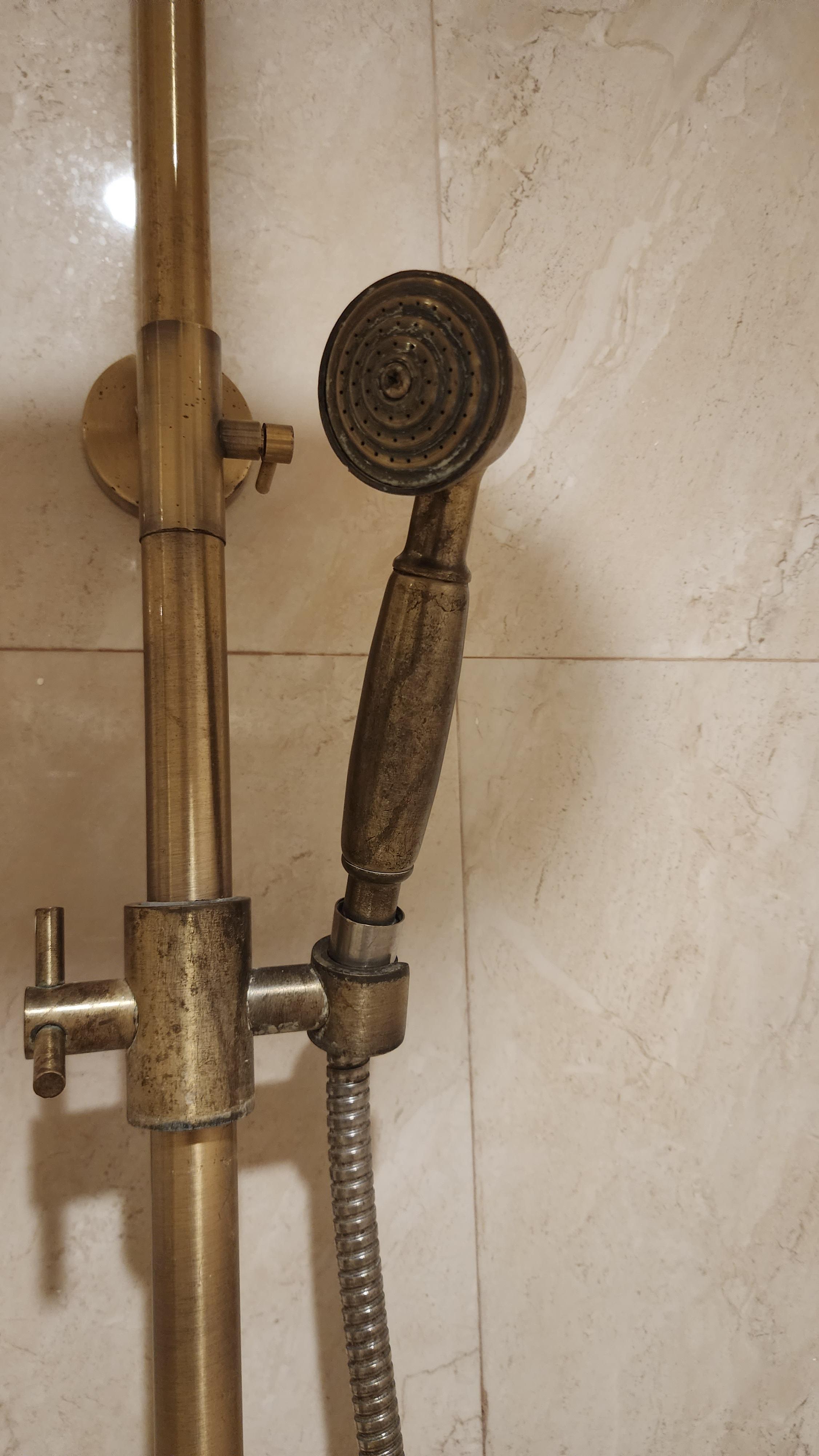 이게 샤워기가 놋쇠 같은 재질이라 좀 지저분해 보입니다.