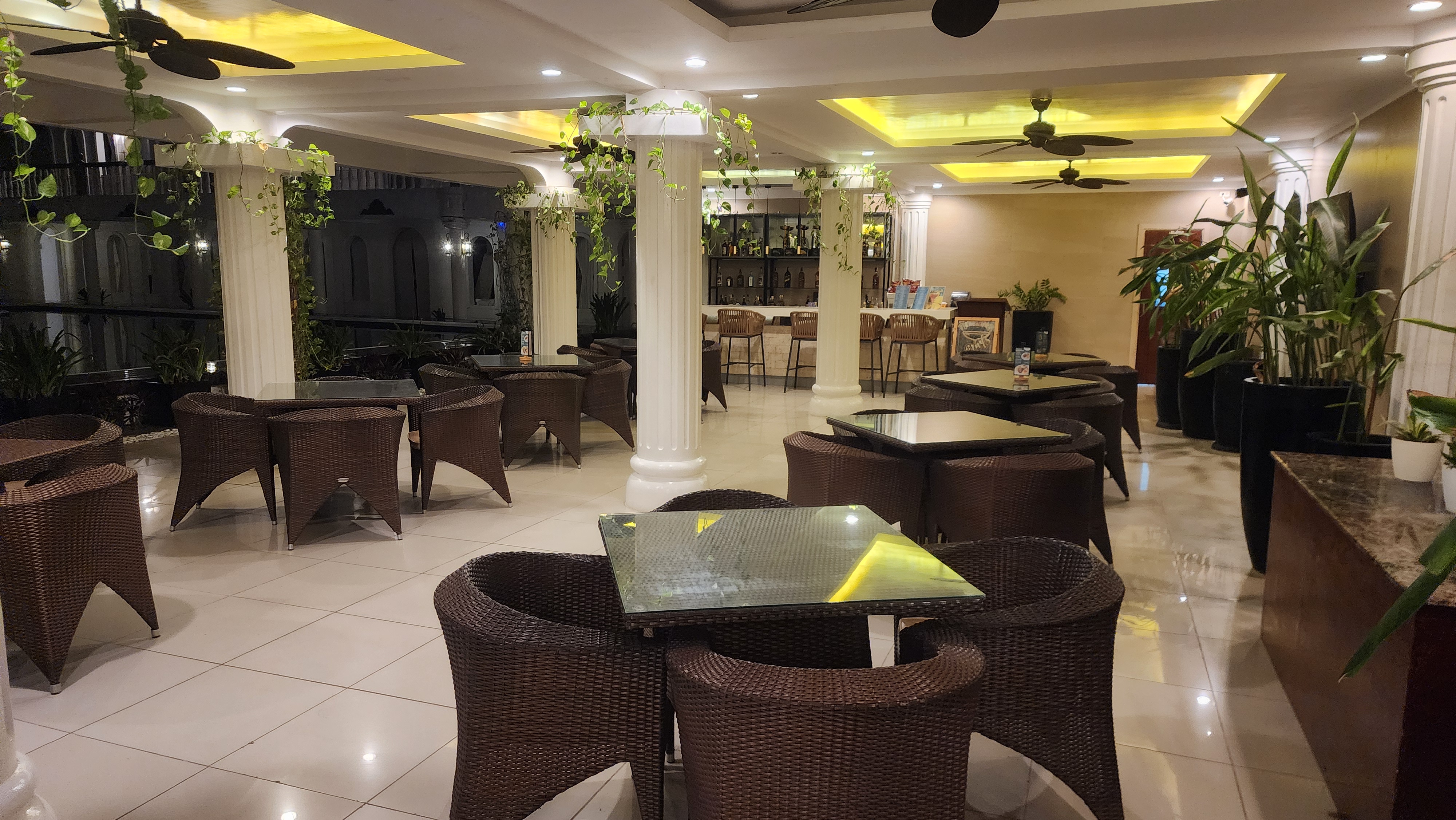 체크인하는 곳 옆에 테이블과 주류를 팔 것 같은 바가 있습니다.