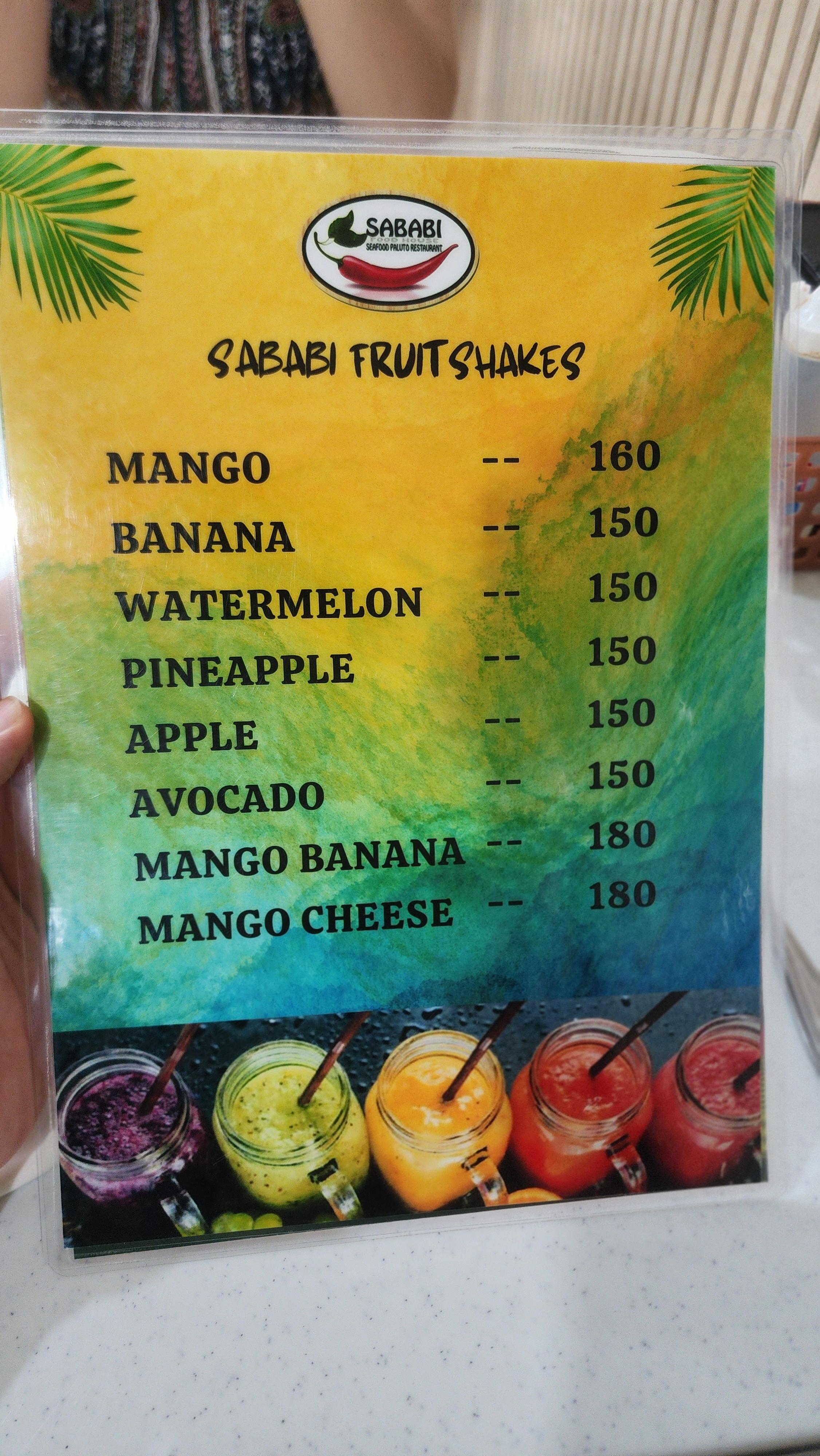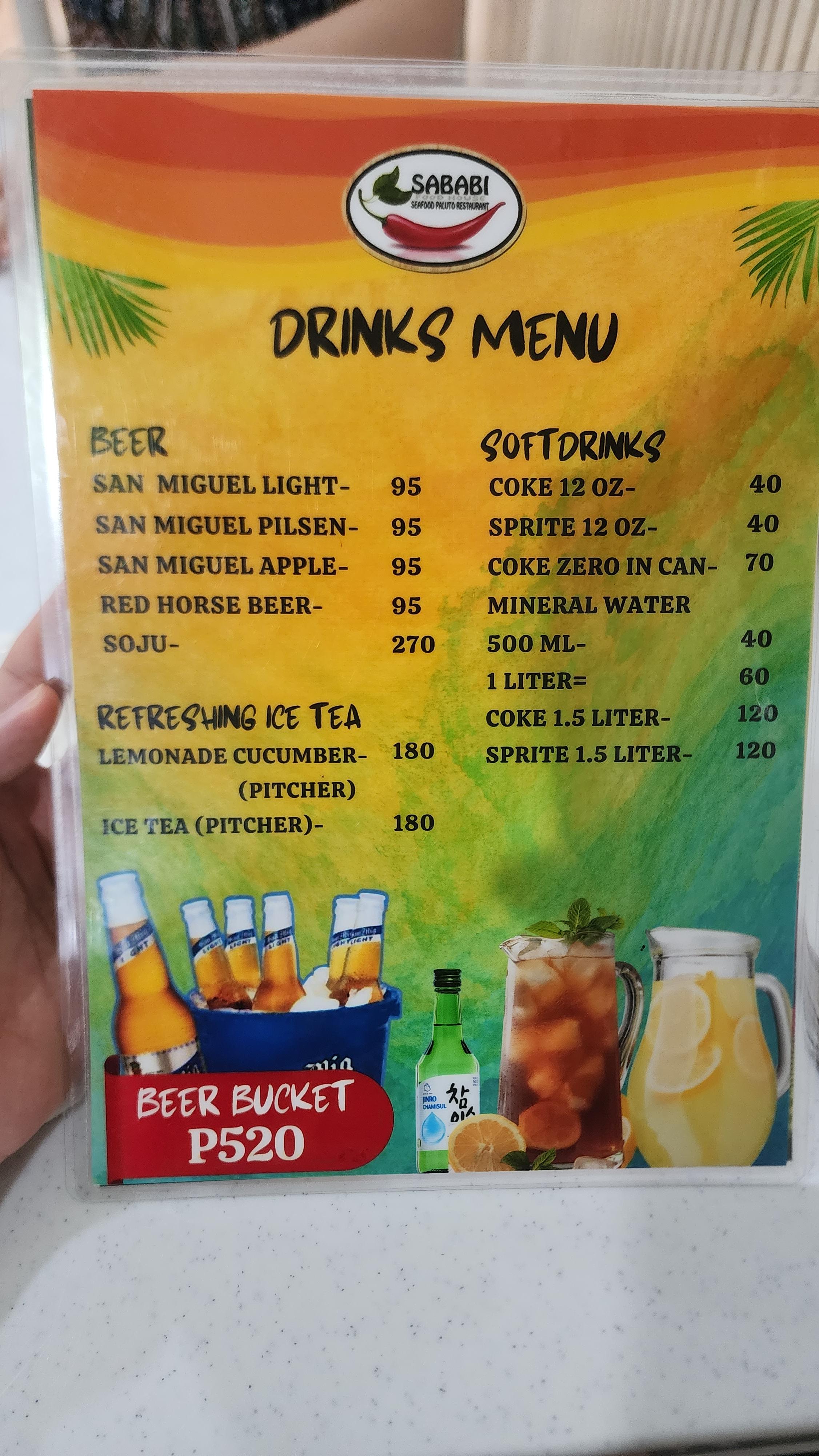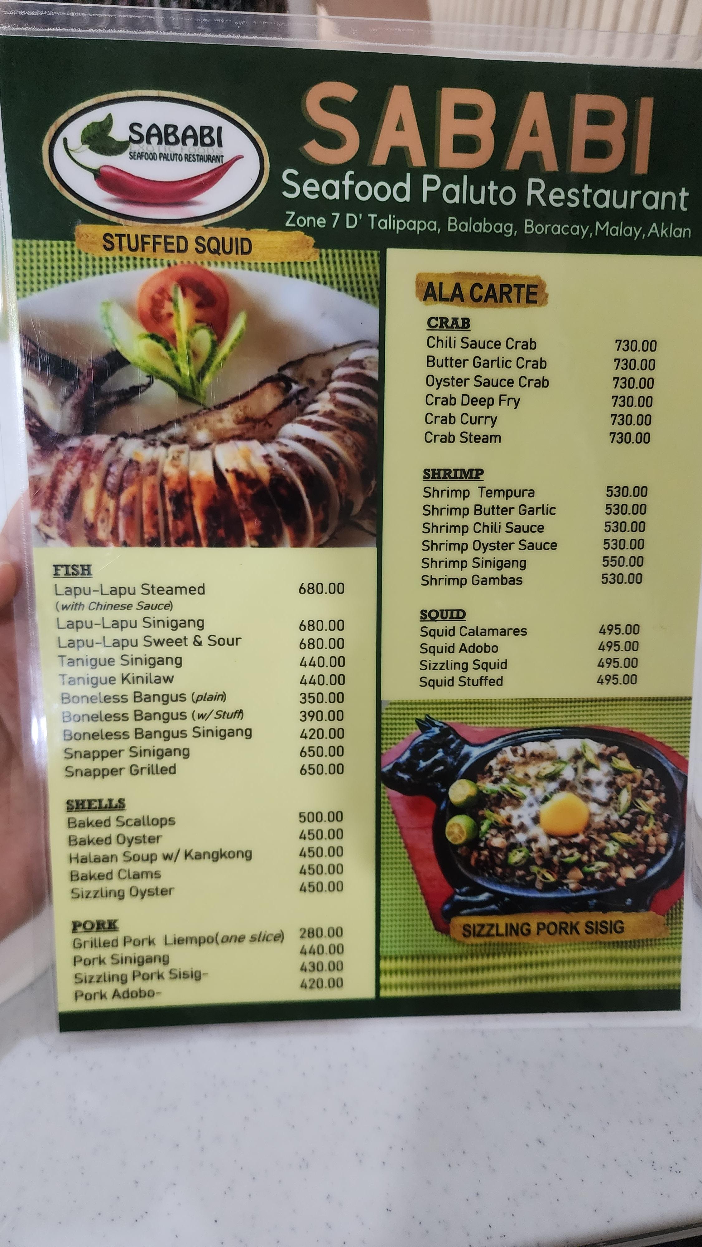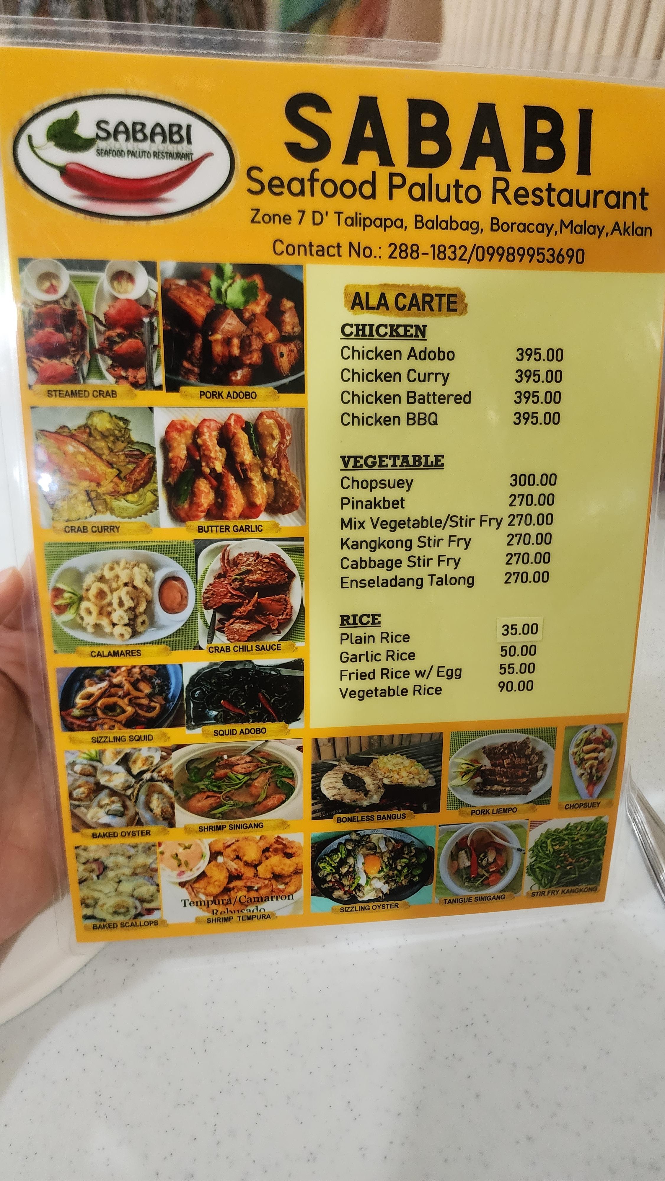 보라카이 사바비 메뉴 및 가격입니다.