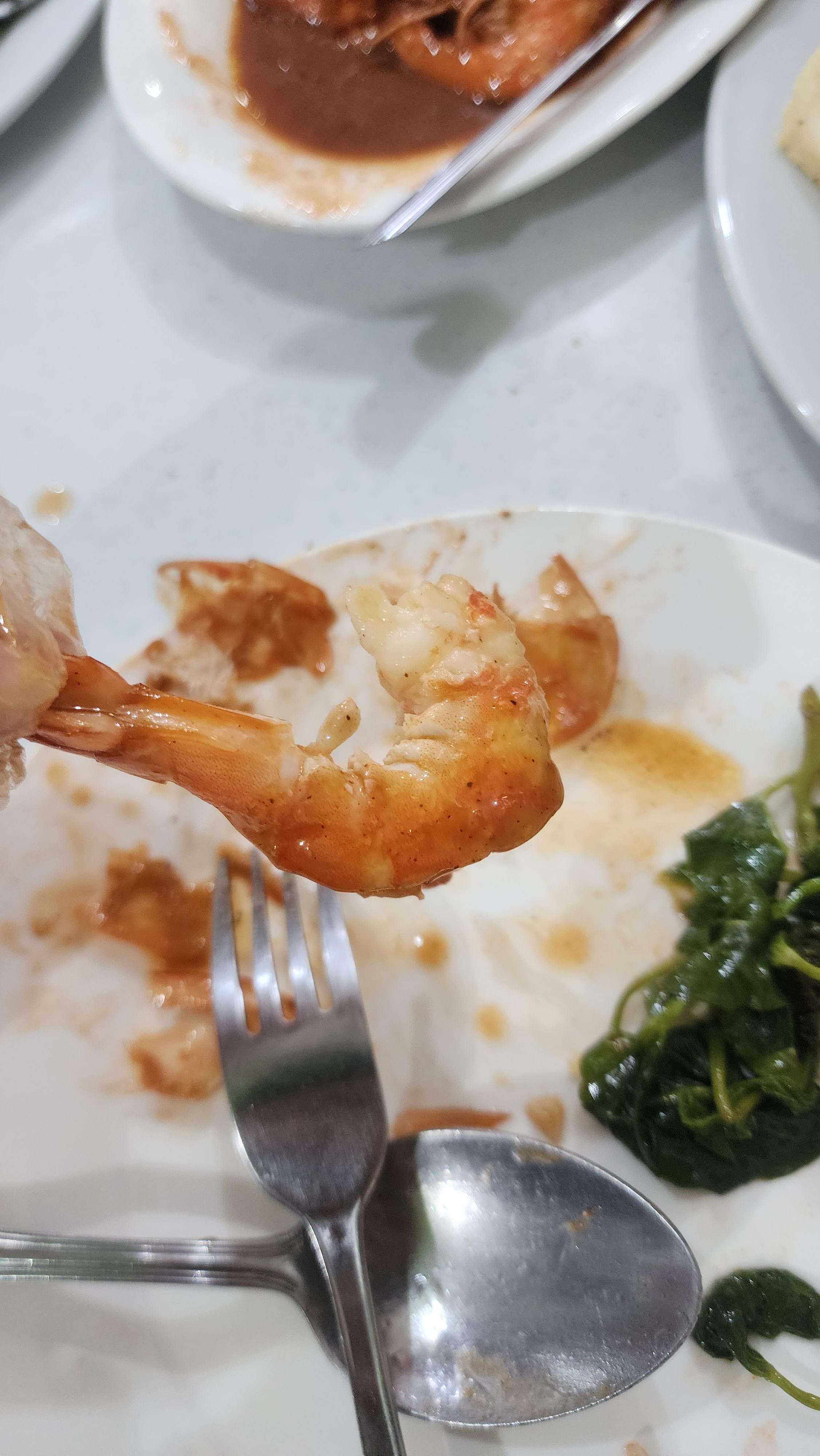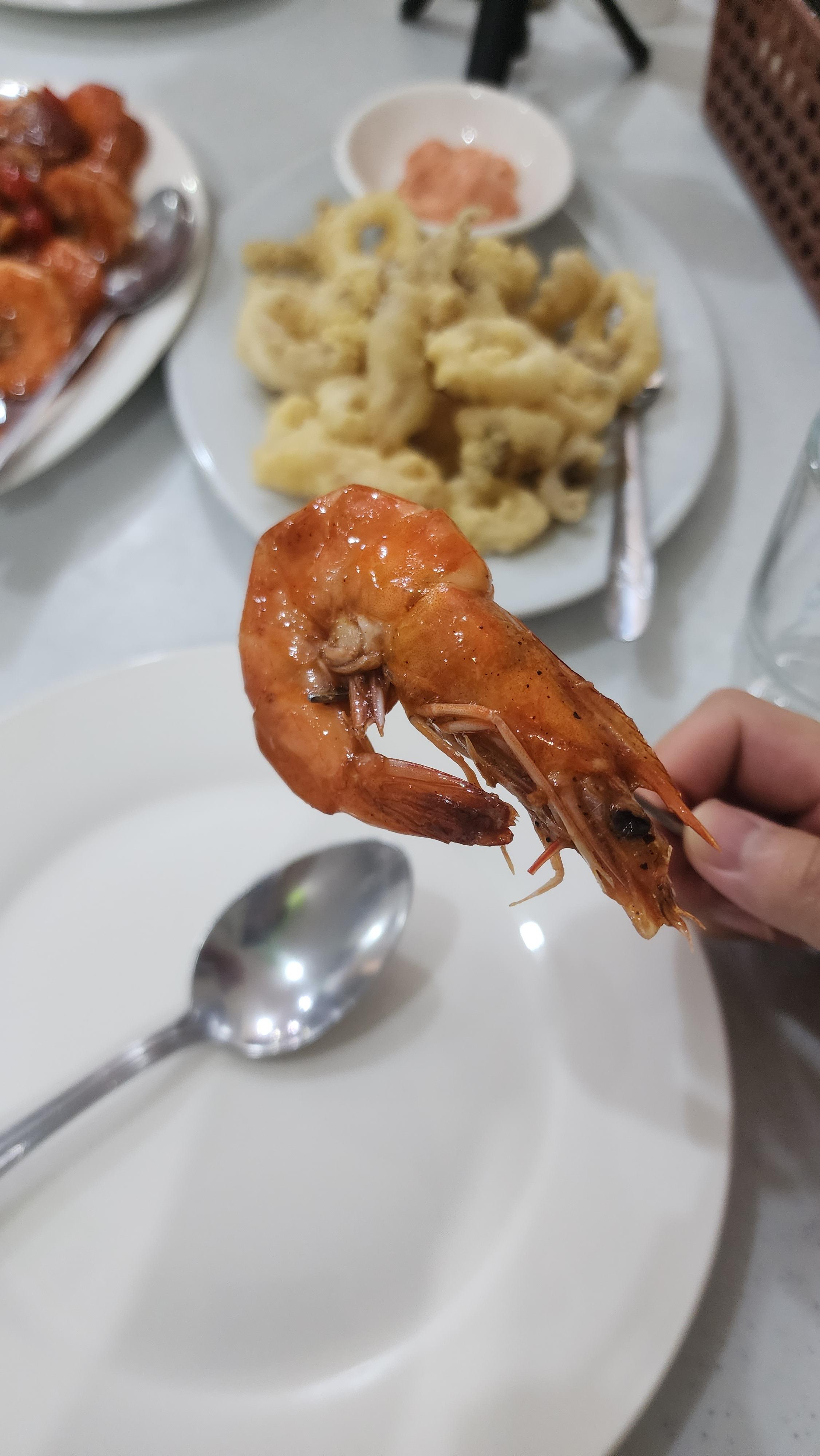 뽀얀 새우 속살을 칠리소스에 다시 푹 찍어서 먹었습니다.