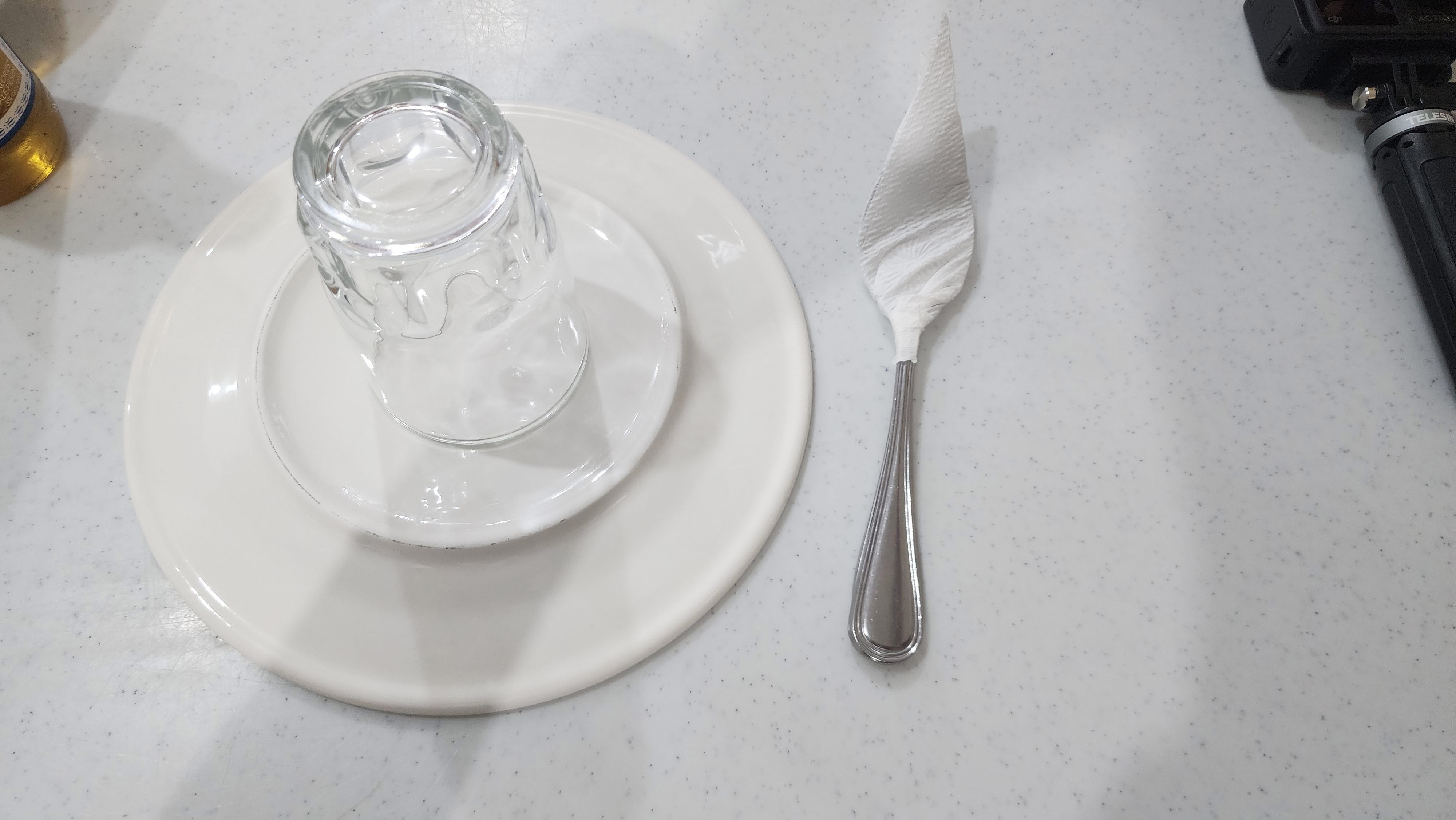 접시와 컵은 뒤집어져 있었고 식기도 휴지로 감싸 있었습니다.