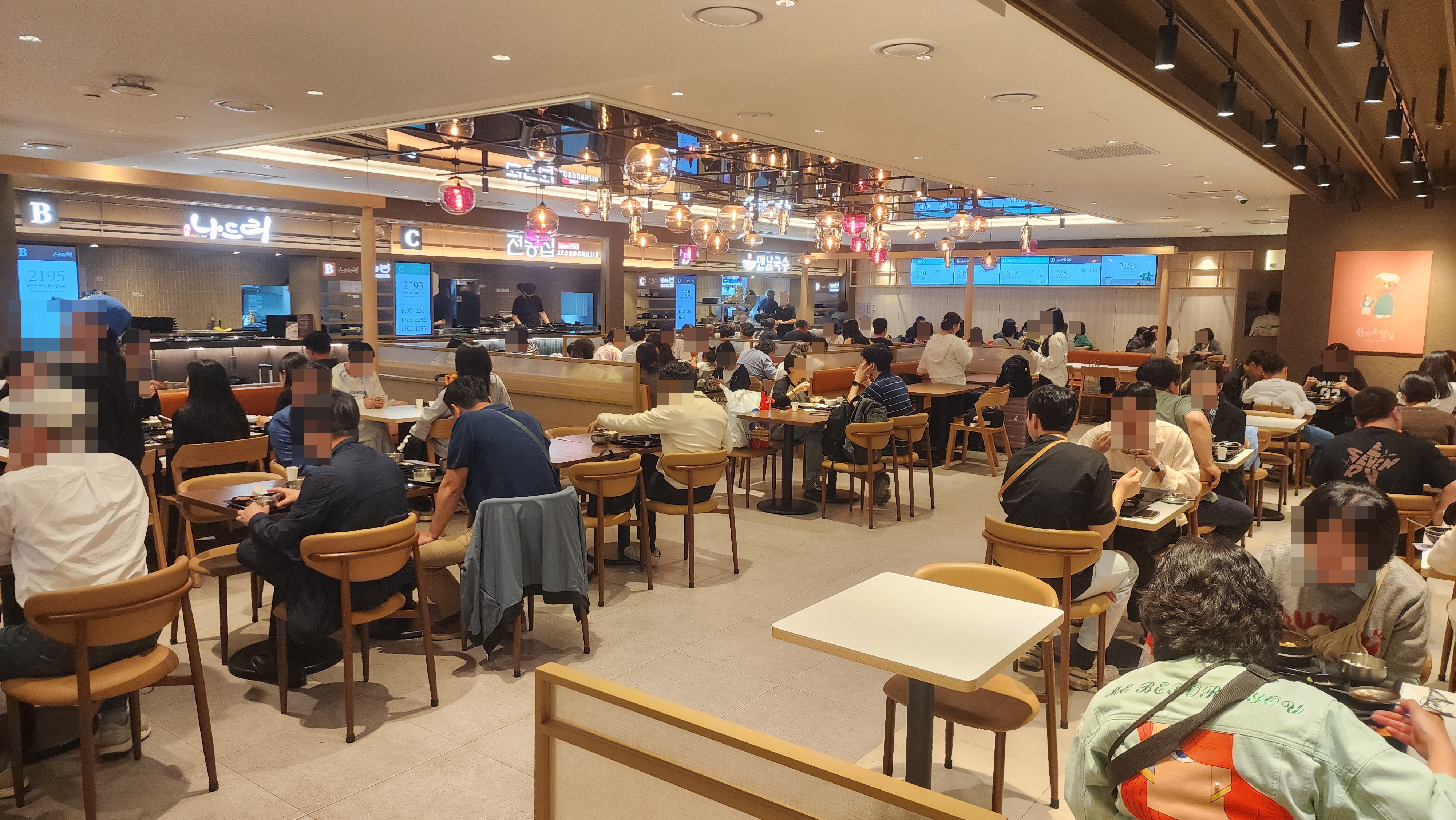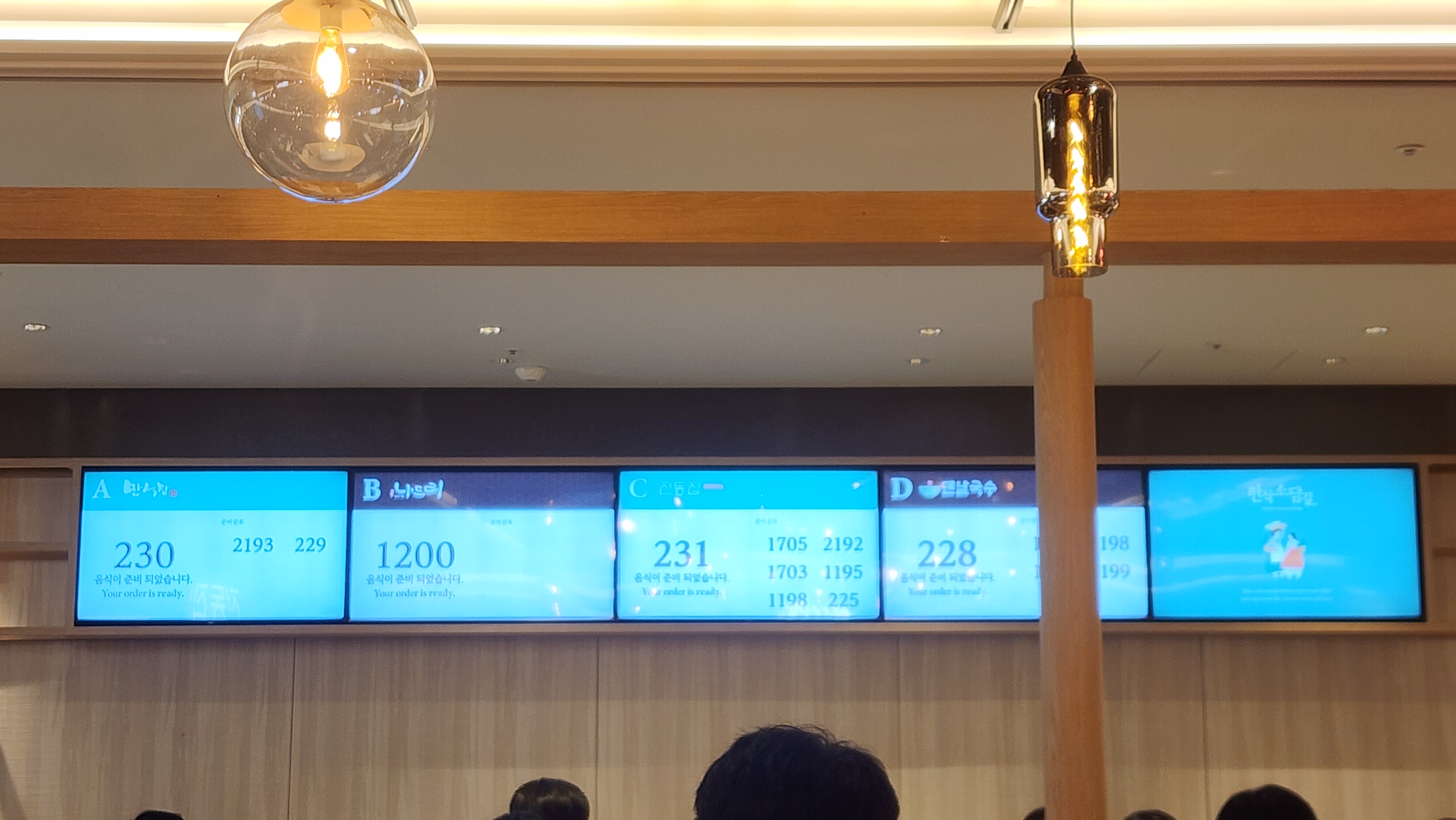 키오스크에서 결제를 하고 번호표를 받고 테이블에서 기다리면 전광판에 번호가 뜹니다.