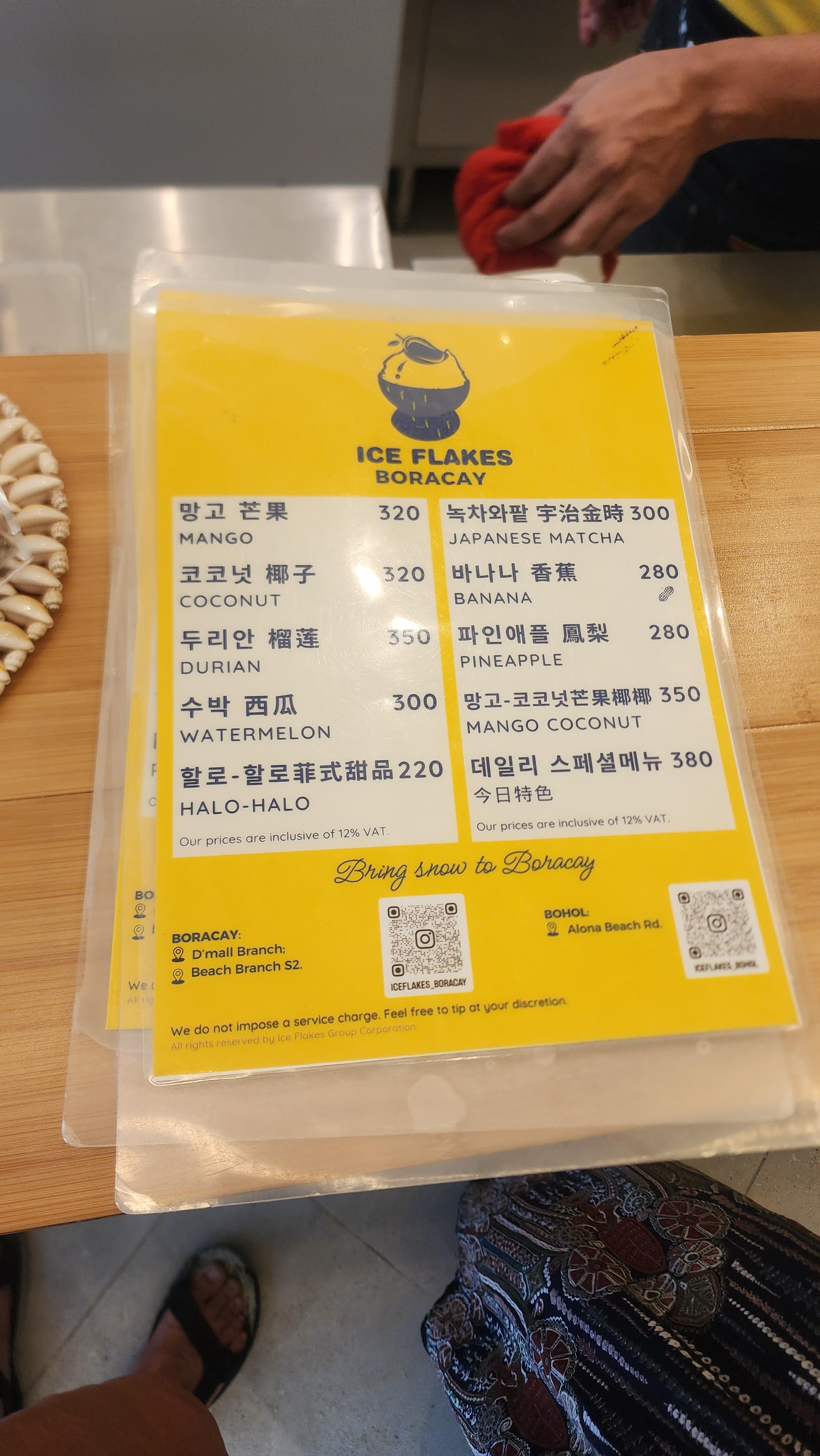 보라카이 아이스플레이크 메뉴 및 가격입니다.