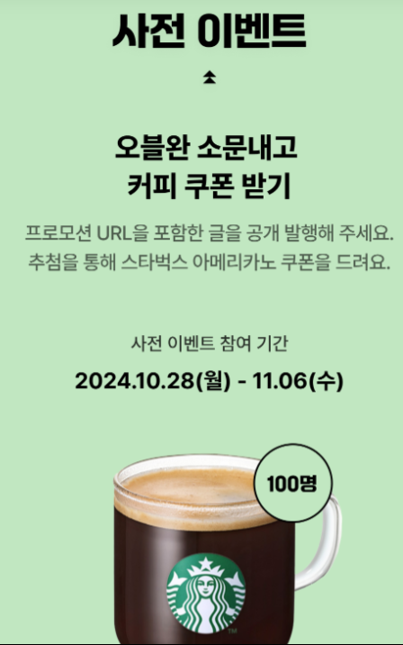 사전 이벤트로 오블완 챌린지를 소문내면 추첨을 통해 스타벅스 아메리카노를 준다고 하는데요!!
