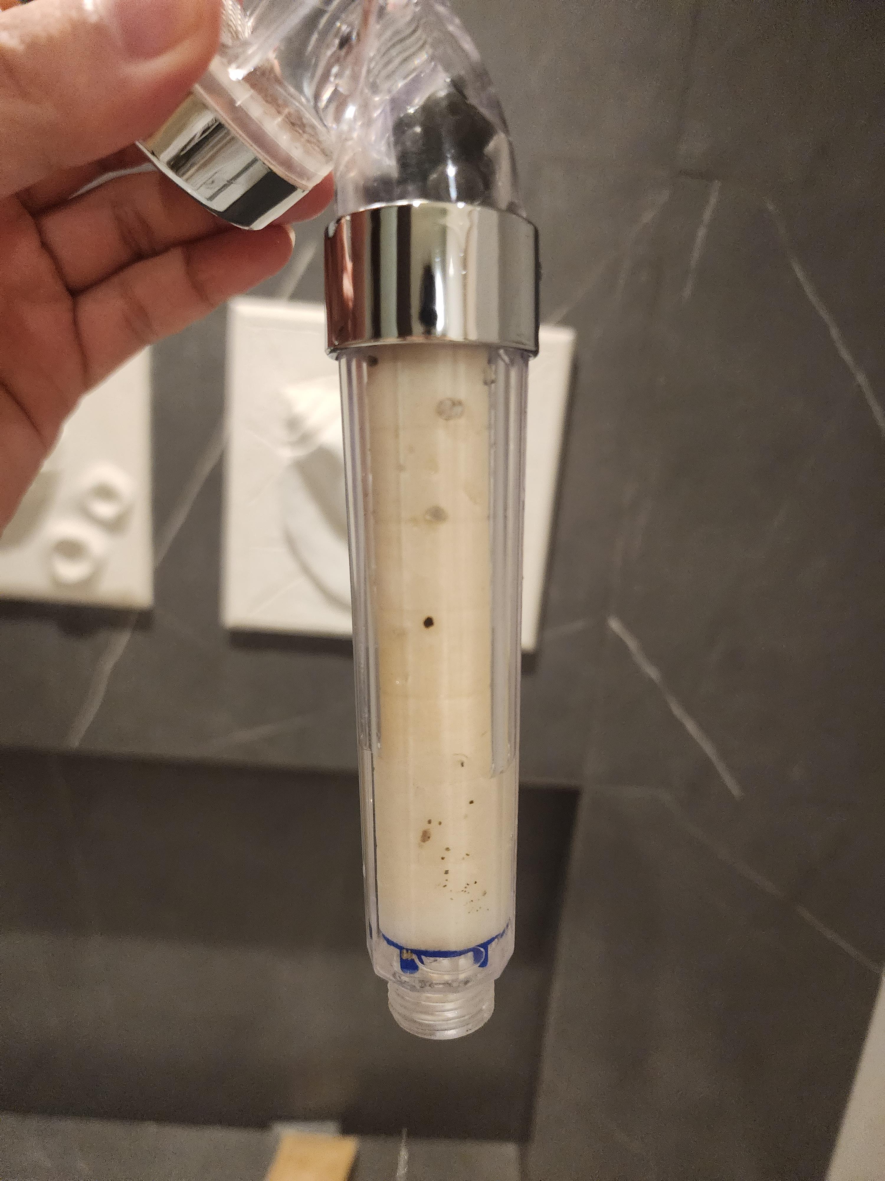 3일 동안 샤워기를 사용하고 필터 사진을 찍었는데 보이는 것과 같이 이물질이 많습니다.