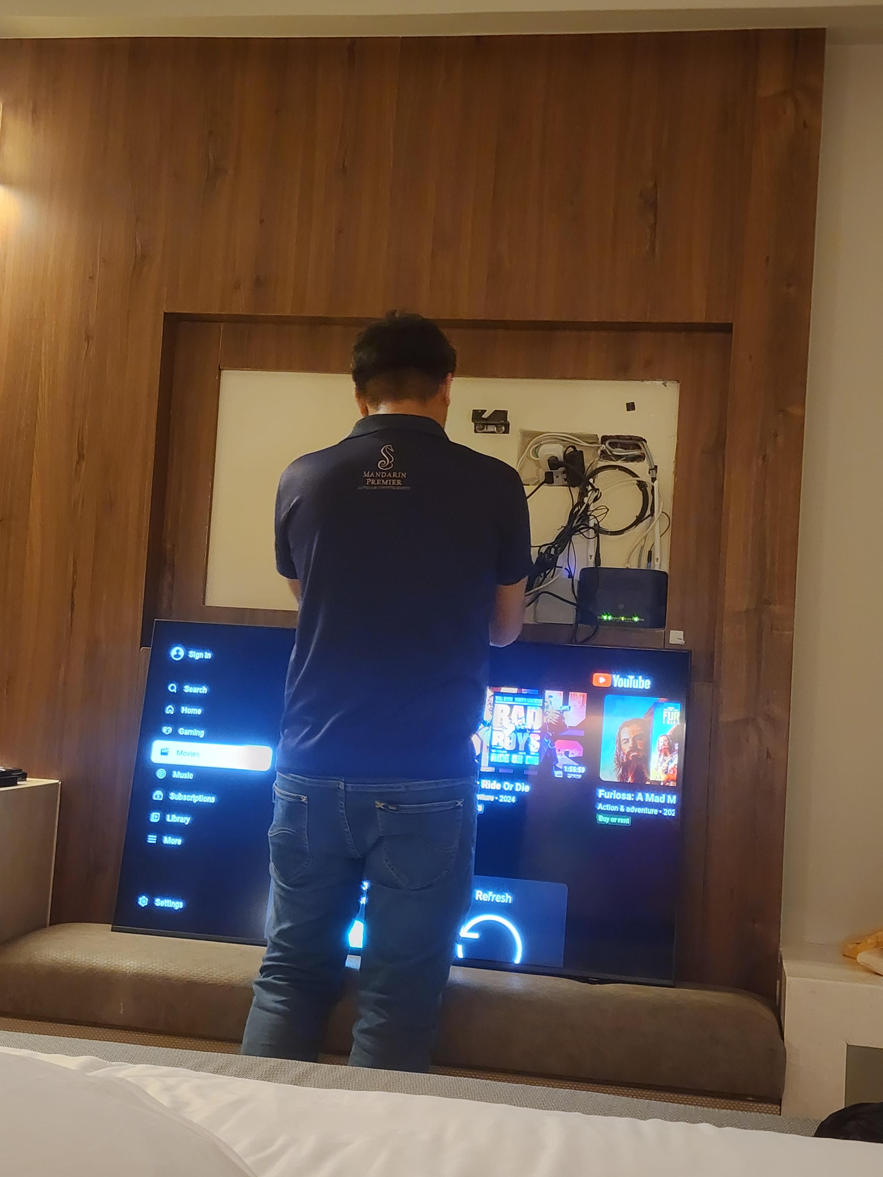 그래서 프런트에 전화해서 점검을 받았는데 와이파이는 좀 괜찮아졌지만 티비는 잘 안 됐습니다.
