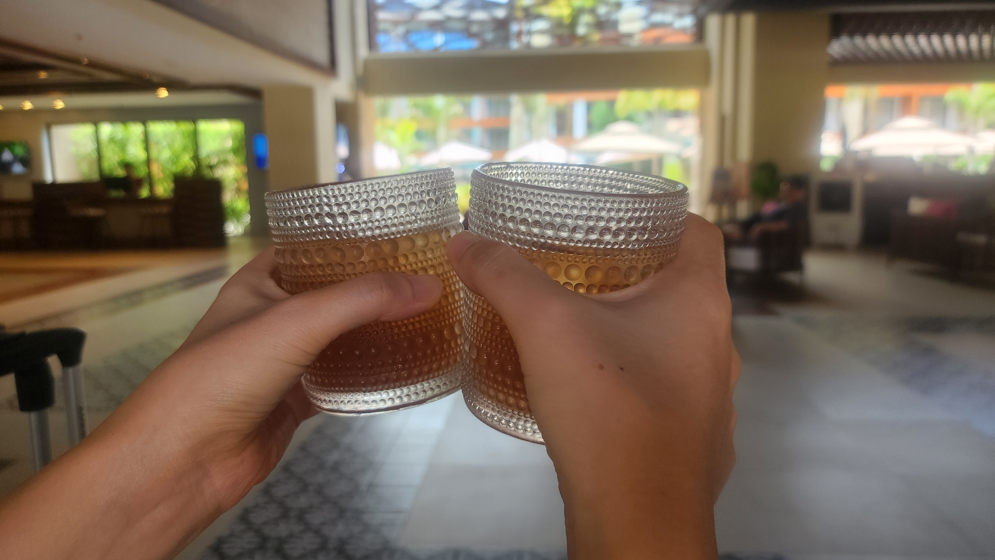 체크인하는 것을 기다리면서 웰컴티를 주셔서 마셨습니다.