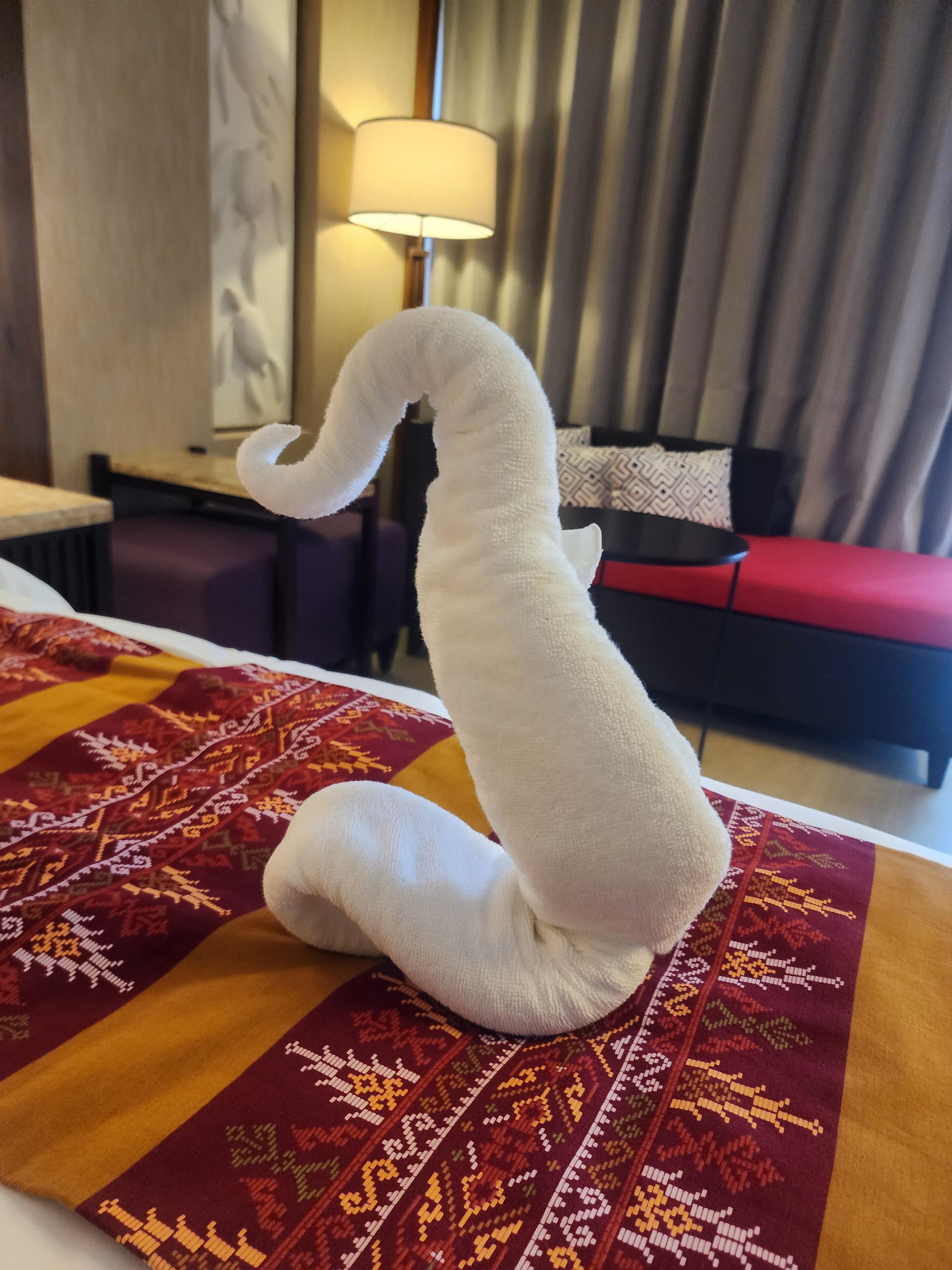 침대 위에 수건으로 만든 게 있는데 뭔지 모르겠네요!!