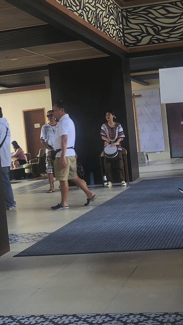 자동차를 타고 체크인하는 곳에 오면 젬베로 연주를 하고 환영 인사를 해줍니다.