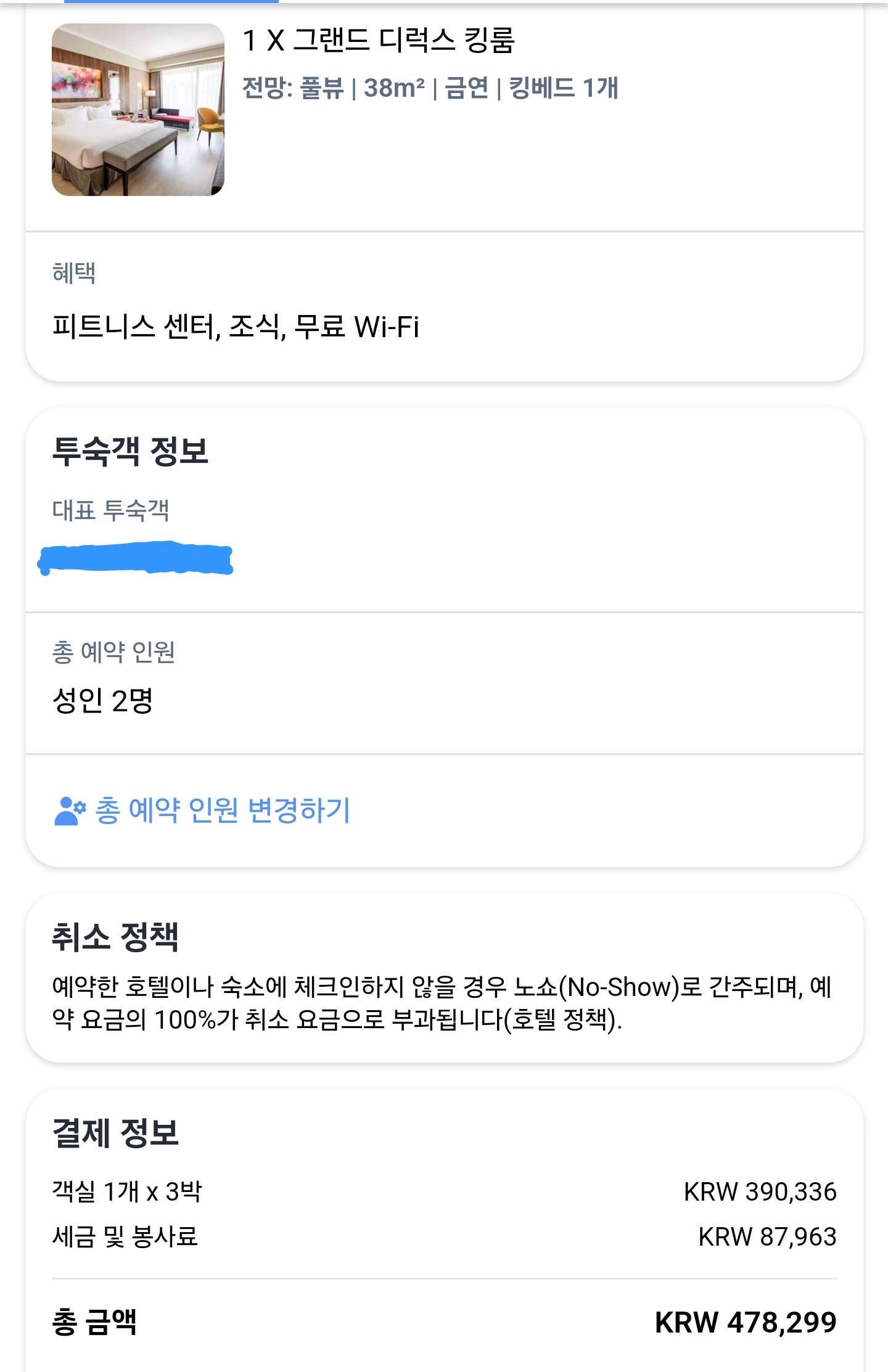 그랜드 디럭스 킹 룸 / 풀 뷰로 예약을 했습니다.