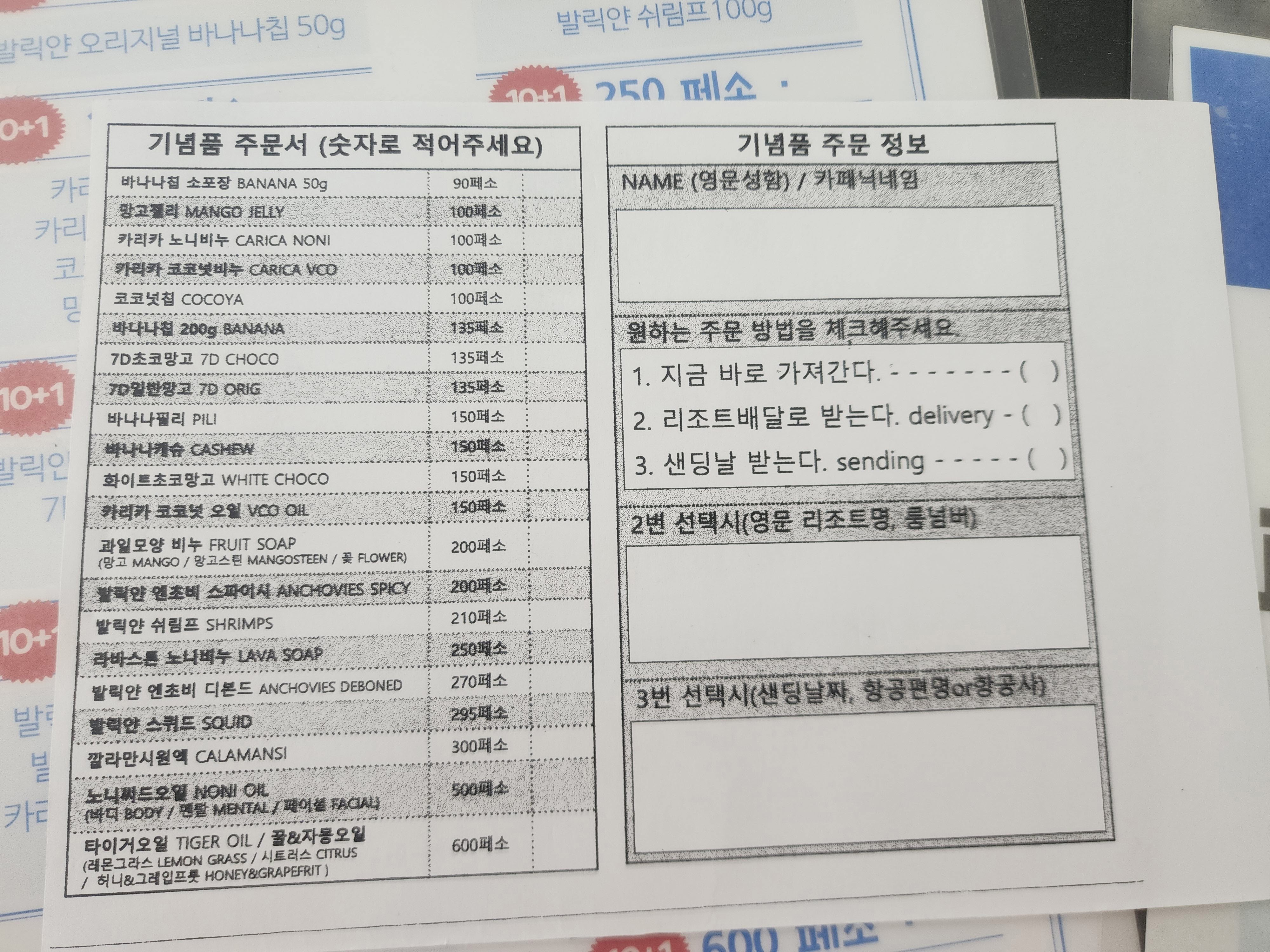 보자무싸 사무실에 가면 구매 용지가 있는데 원하는 기념품 수량을 적고 계산을 하면 됩니다.