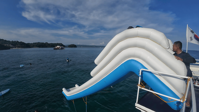 여기는 스노클링 포인트는 아니어서 물고기는 없지만 물이 깊어서 미끄럼틀과 다이빙을 할 수 있습니다.