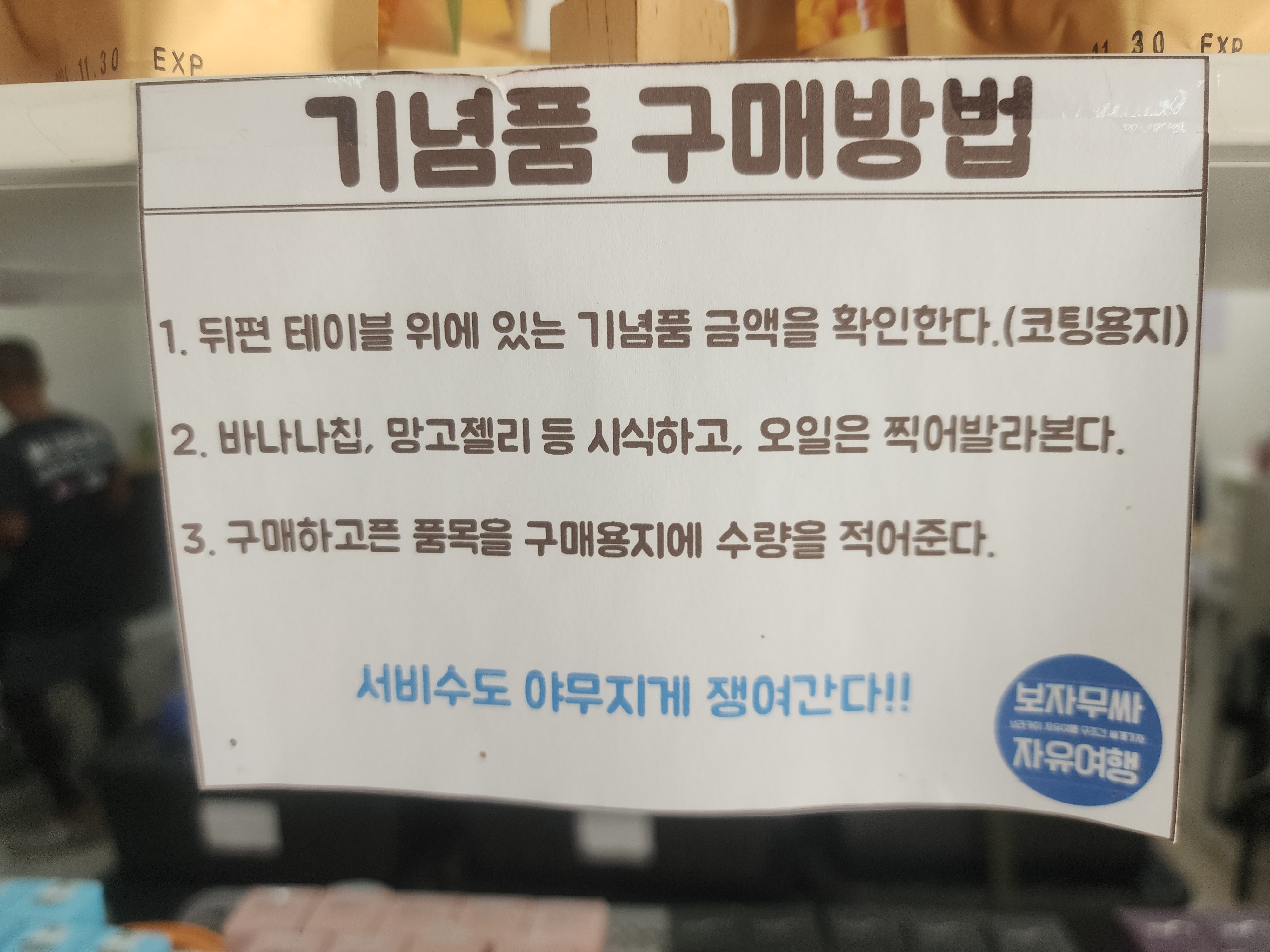 보자무싸 기념품 구매 방법입니다.
