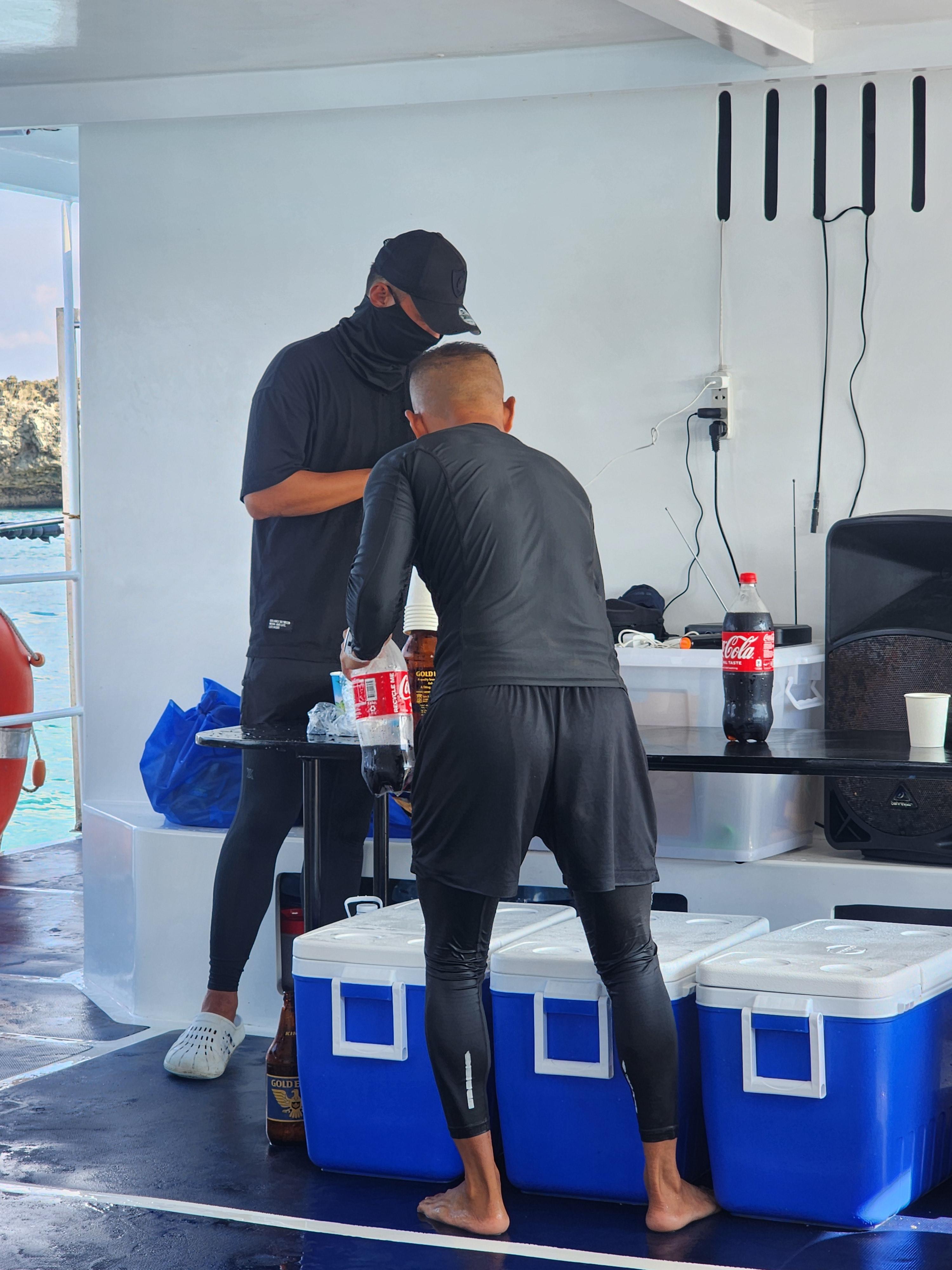 포인트에 도착 해서 스노클링 장비를 나눠 주시고 수영을 못 하시는 분들을 확인하는데요.