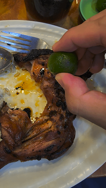 한창 고기를 먹다가 라임을 뿌려줬습니다.