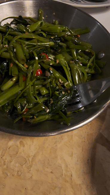 크랩이 나오기 전에 모닝글로리 볶음과 갈릭밥이 나왔습니다.
