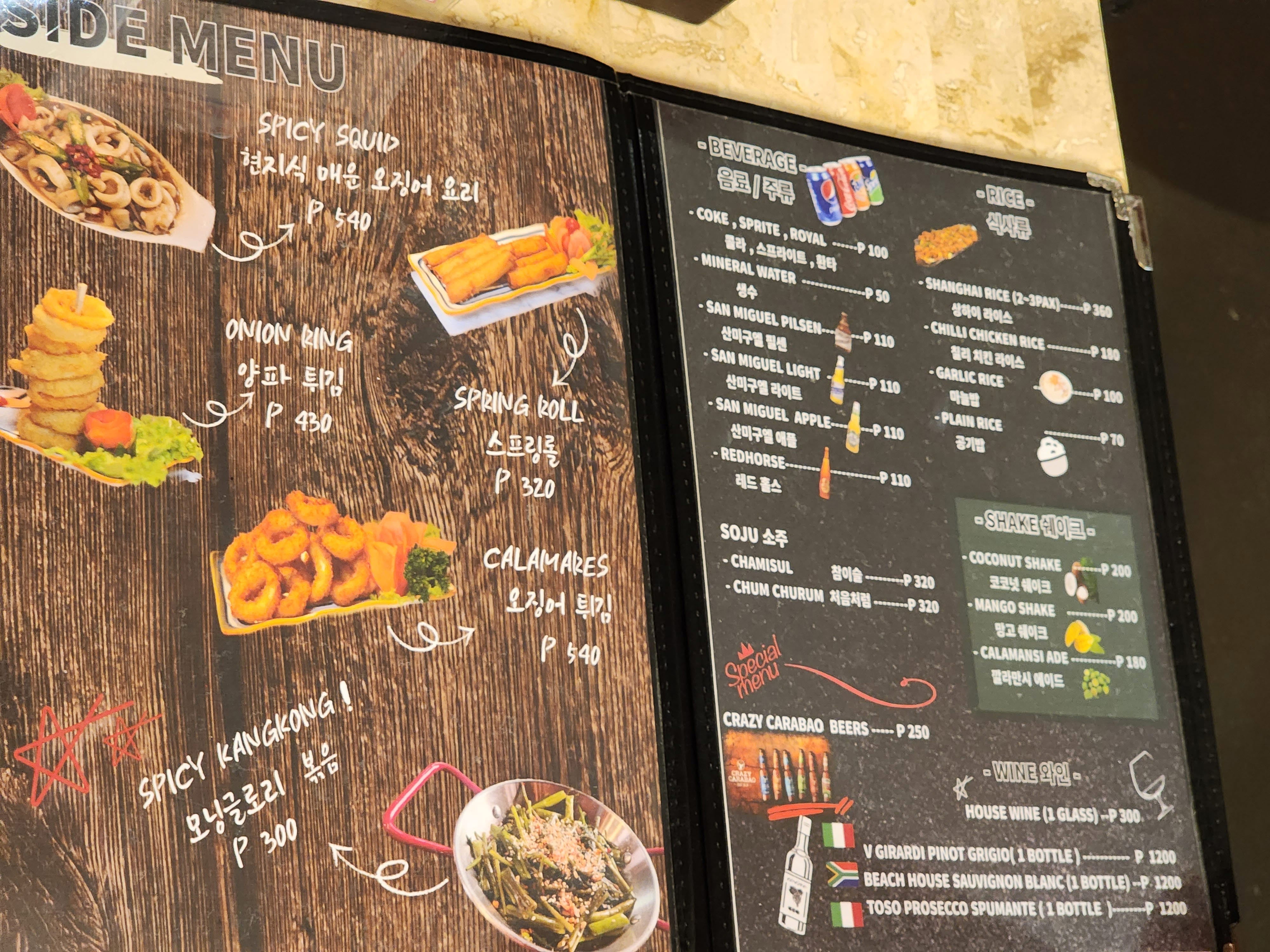 한국인이 많이 방문하는 식당답게 한국어로 메뉴 및 가격이 적혀 있습니다.